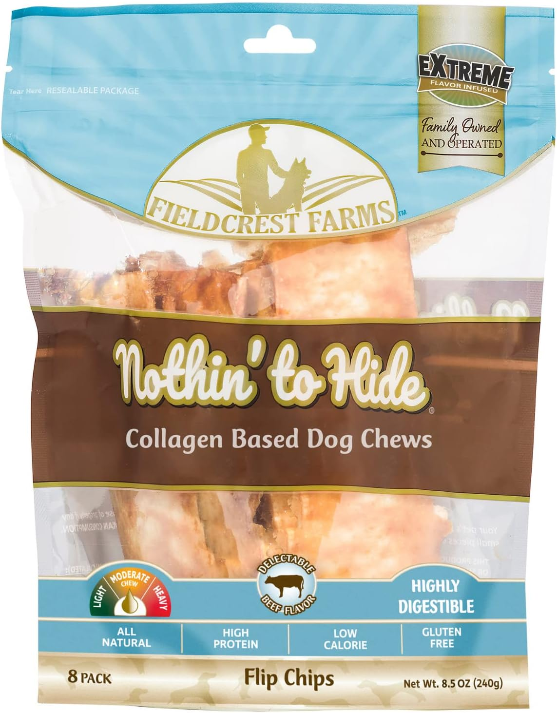 Fieldcrest Farms Nothin to Hide Flip Chips Chews for Dogs - All Natural Rawhide Alternative Treats for Dogs, Chicken, Beef or Peanut Butter Flavor Snack for All Breed Dogs