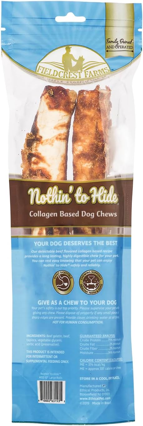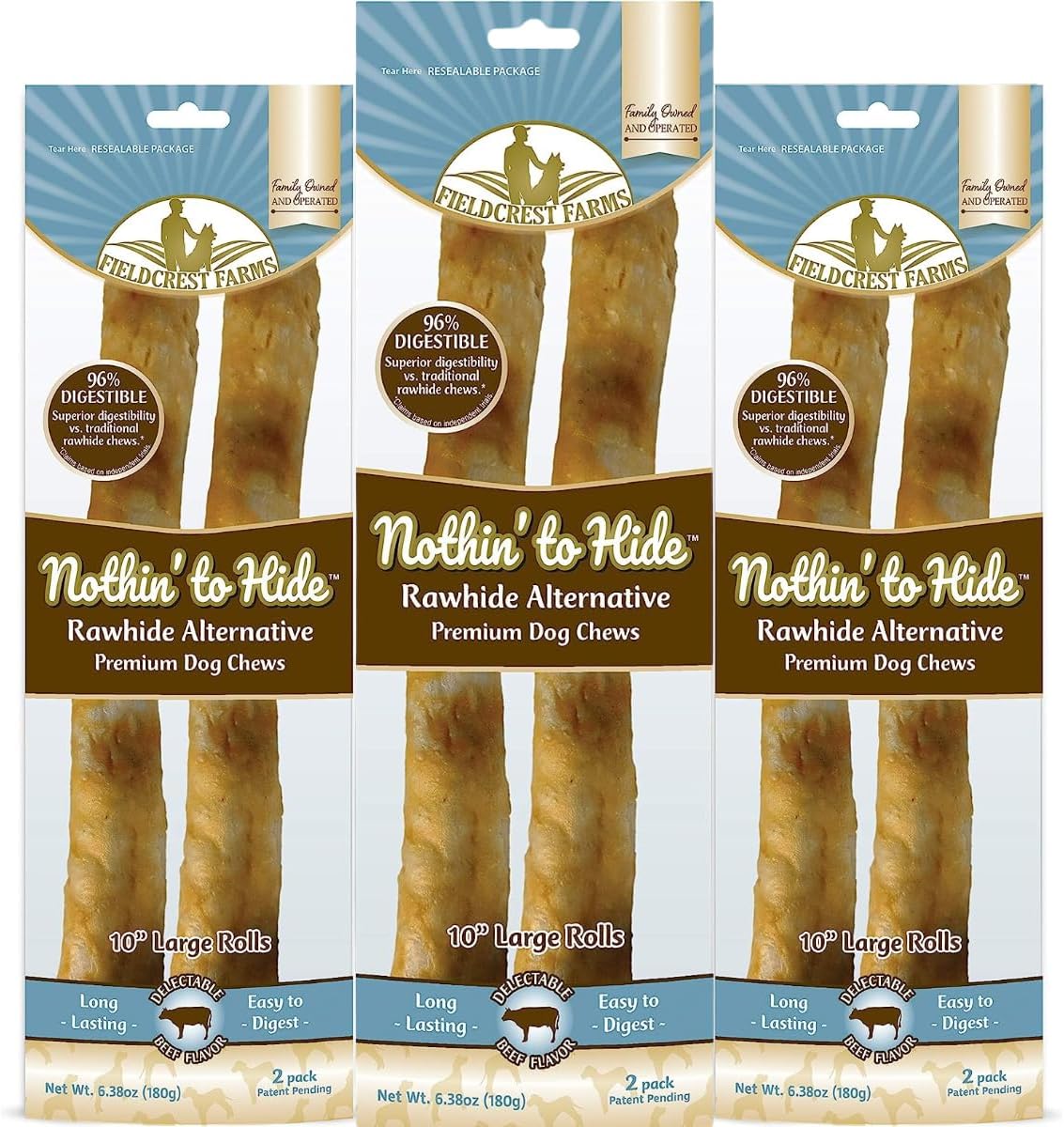 Fieldcrest Farms Nothing to Hide Natural Rawhide Alternative Large 10'' Rolls for Dogs - 2 Pack (Beef)