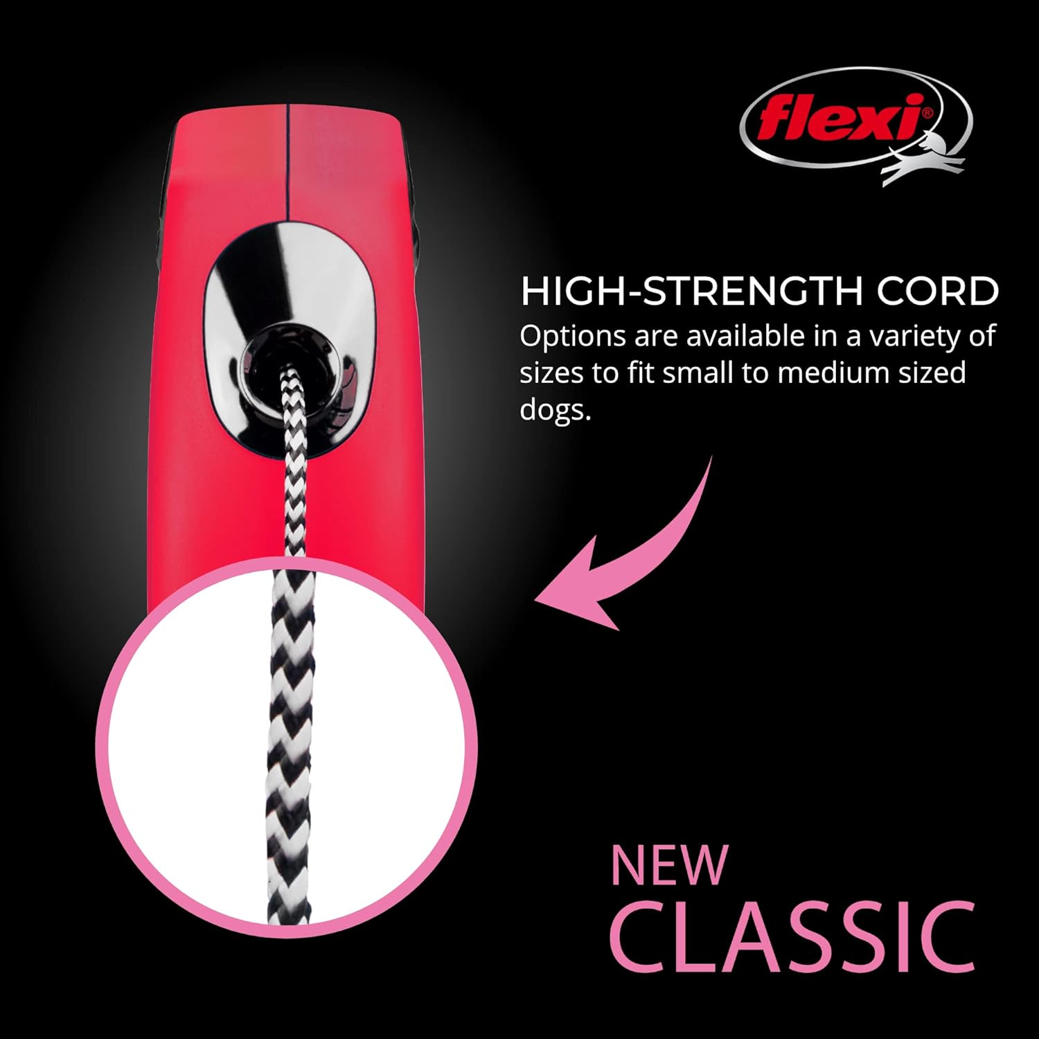 FLEXI New Classic Cord Retractable Dog Leash for Small Dogs up to 26 lbs. – 16 ft., Red | Tangle-Free Pet Walking Leash with One-Handed Brake, Pause, Lock | German Quality Product