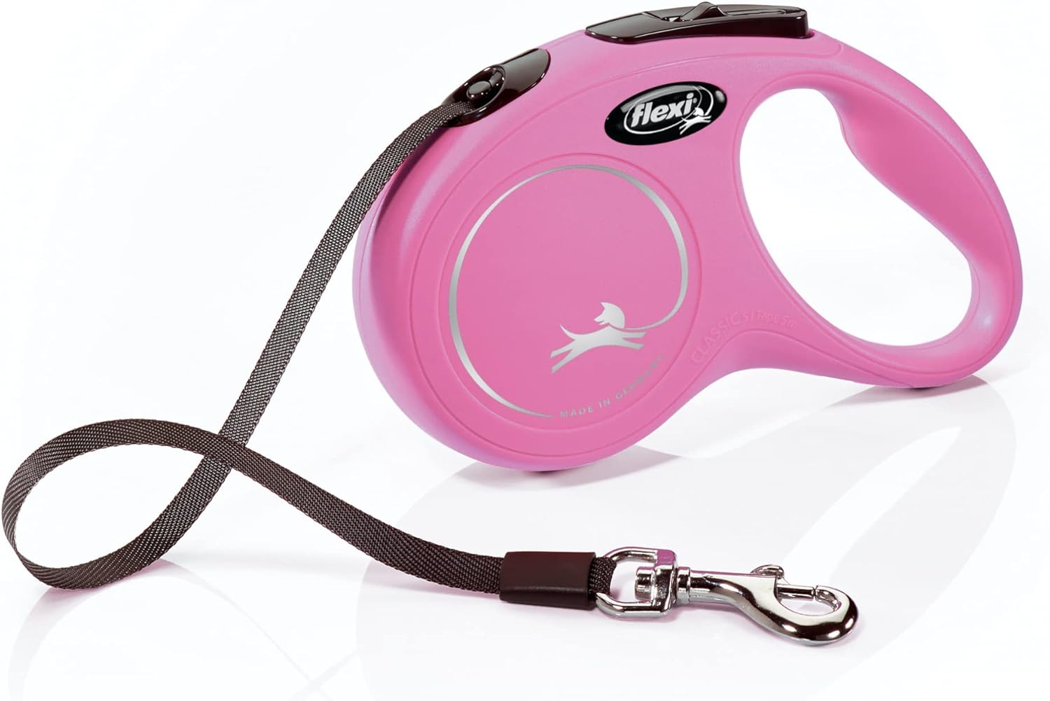 FLEXI New Classic Tape Retractable Dog Leash for Small Dogs Up to 33 lbs. – 16 ft., Pink Tangle-Free Pet Walking Leash with One-Handed Brake, Pause, Lock German Quality Product