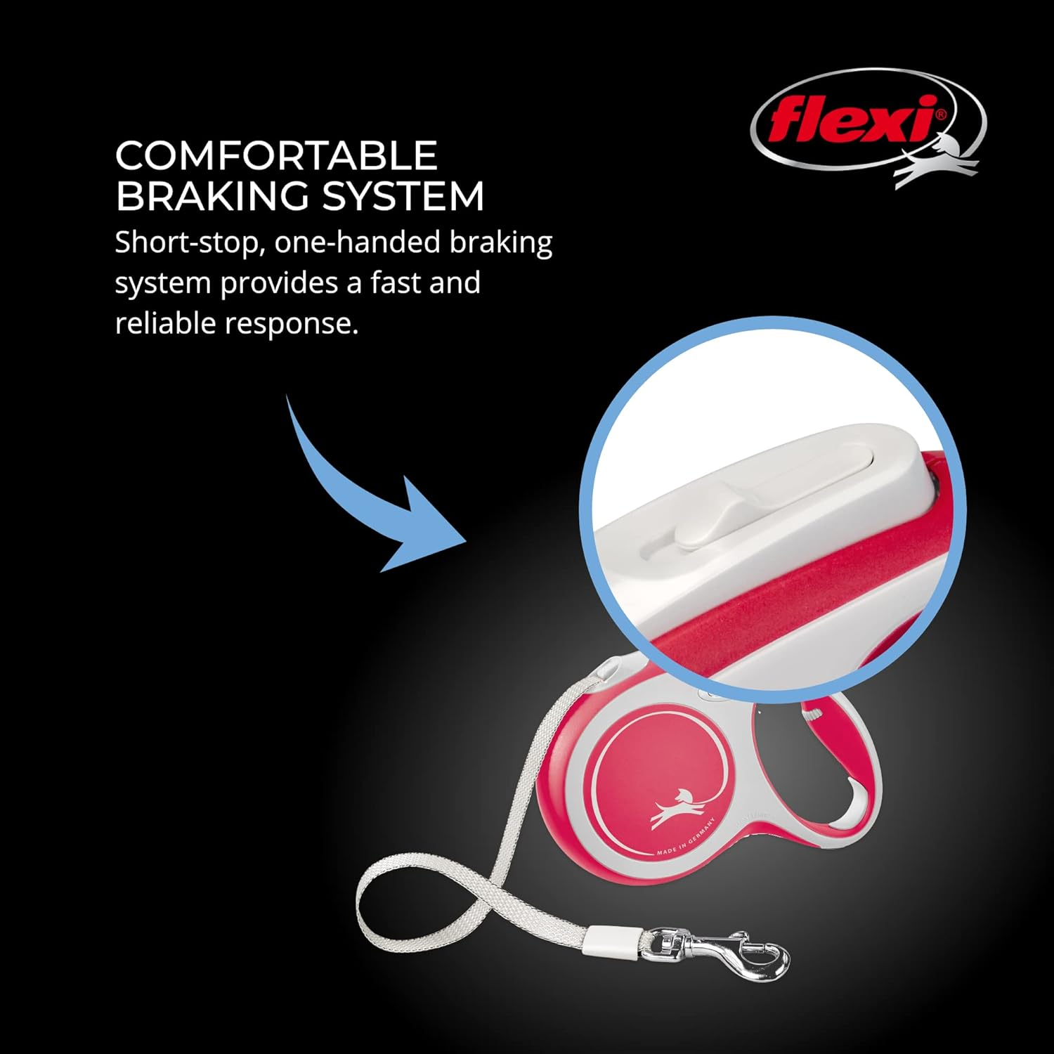 FLEXI New Comfort Tape Retractable Dog Leashes for Large Dogs Upto 132 lbs. – 16 ft., Red/Pastel | Tangle Free Pet Walking Leash with One-Handed Brake, Pause, Lock|German Quality Product