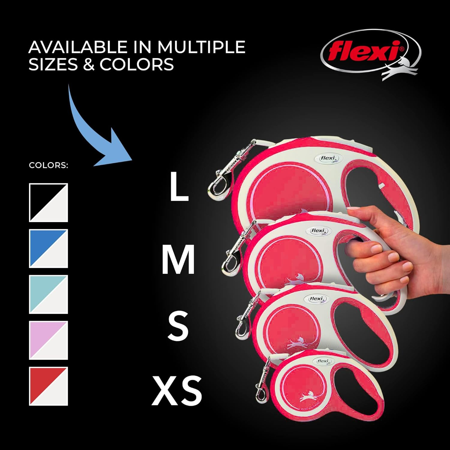 FLEXI New Comfort Tape Retractable Dog Leashes for Large Dogs Upto 132 lbs. – 16 ft., Red/Pastel | Tangle Free Pet Walking Leash with One-Handed Brake, Pause, Lock|German Quality Product