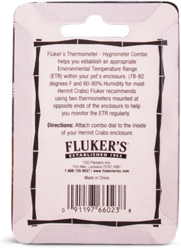| Included Components | Fluker's Hermit Headquarters Analog Thermometer / Hygrometer Combo |