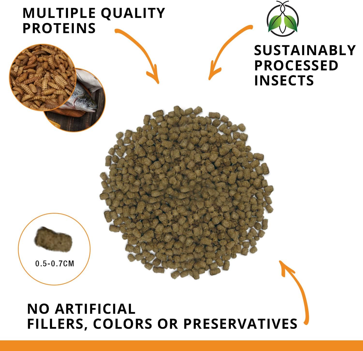 Ingredients Dried black soldier fly larvae, corn, corn gluten meal, wheat, salmon, pea protein concentrate, calcium carbonate,...