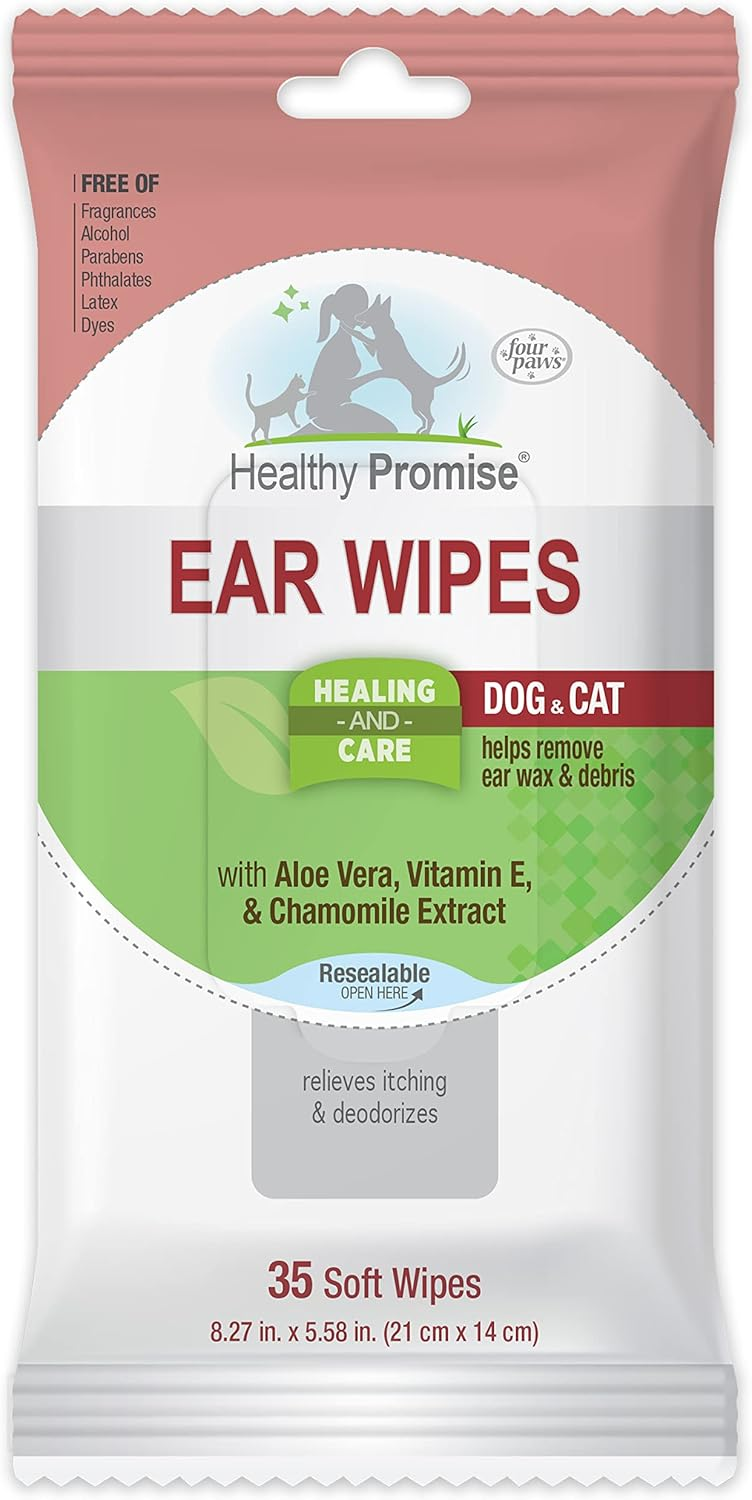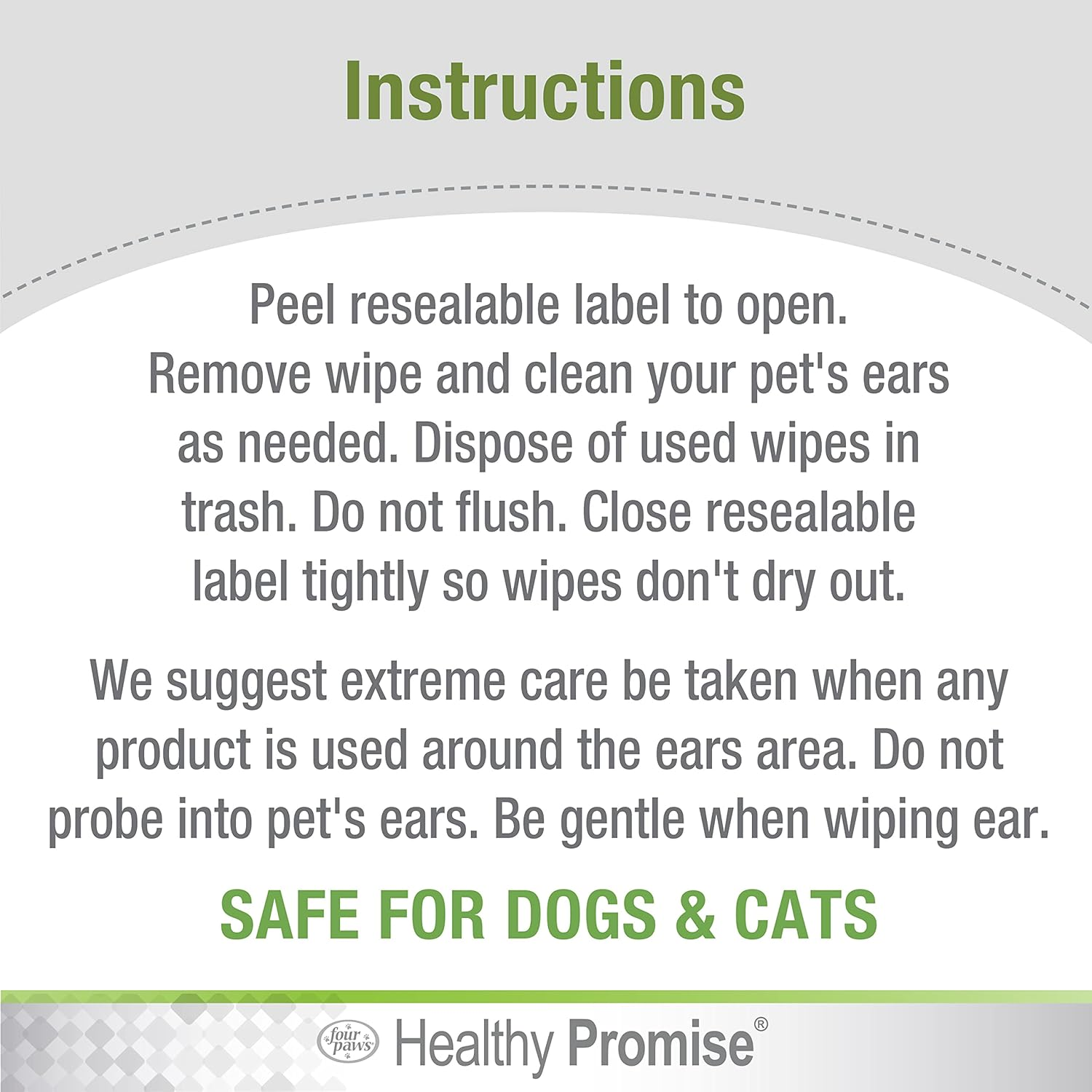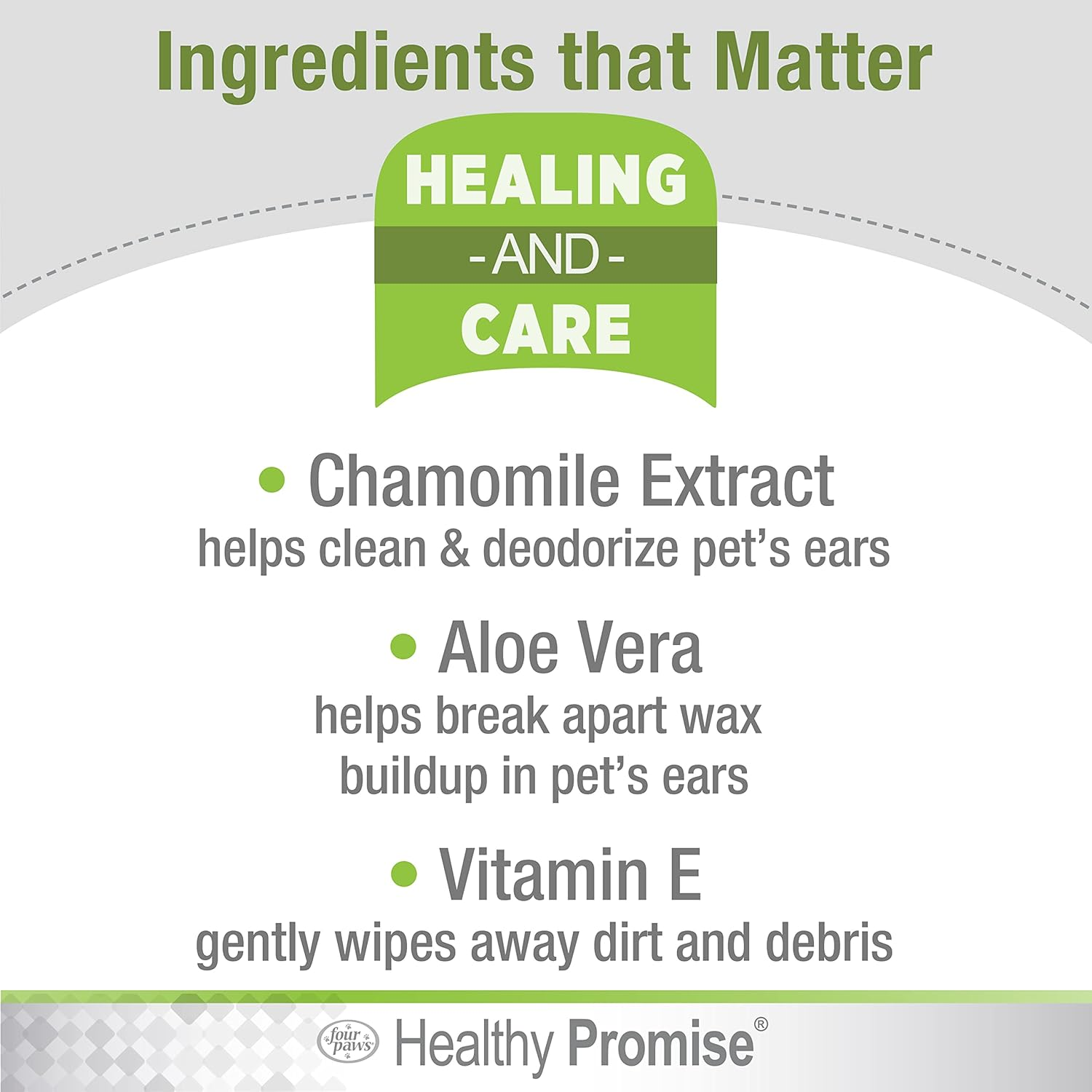 Four Paws Healthy Promise Grooming Soothing Pet Ear Cleaning Wipes, Odor Reducing & Itch Relief