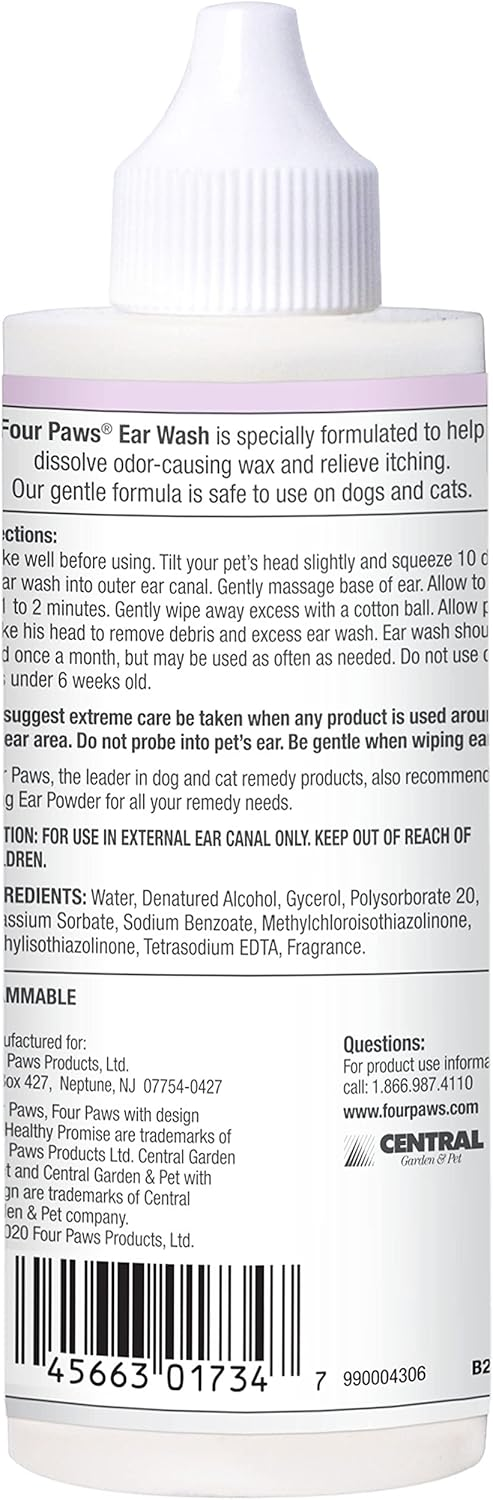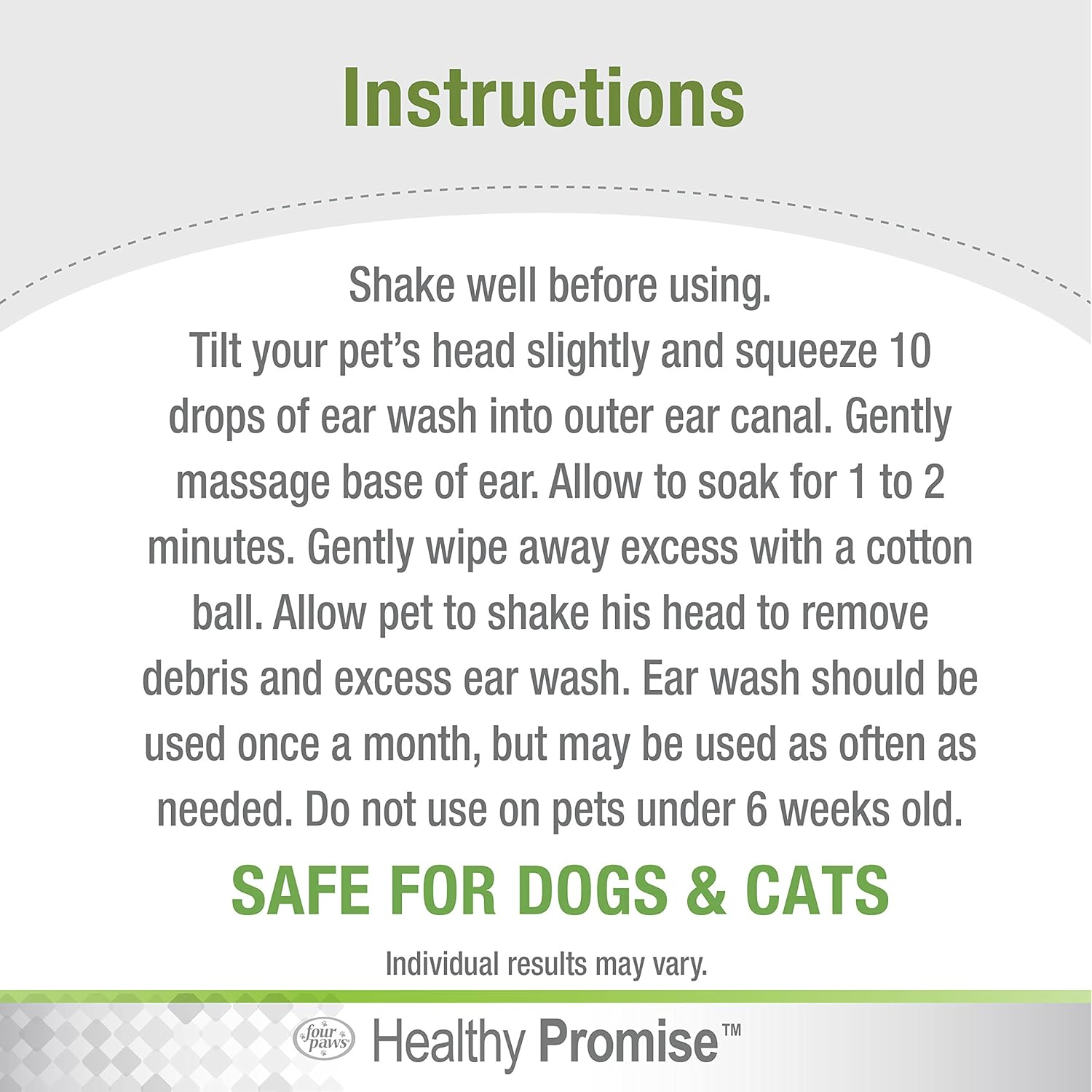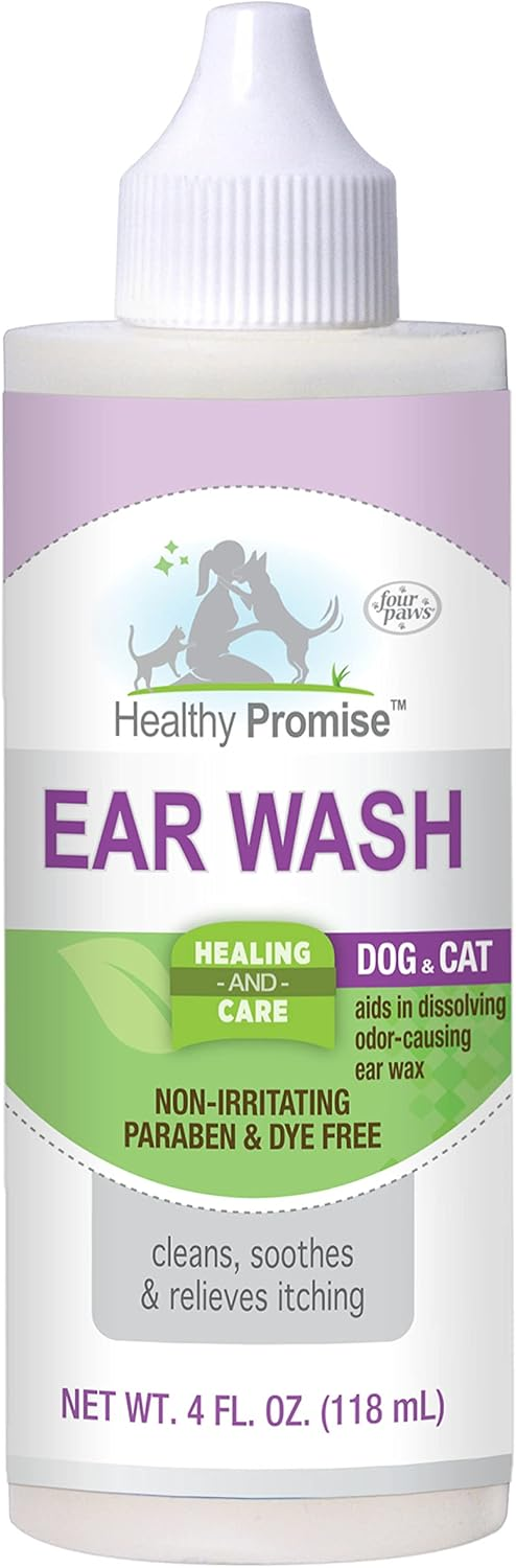Four Paws Healthy Promise Grooming Soothing Pet Ear Wash Cleaner for Dogs and Cats, Odor Reducing & Itch Relief
