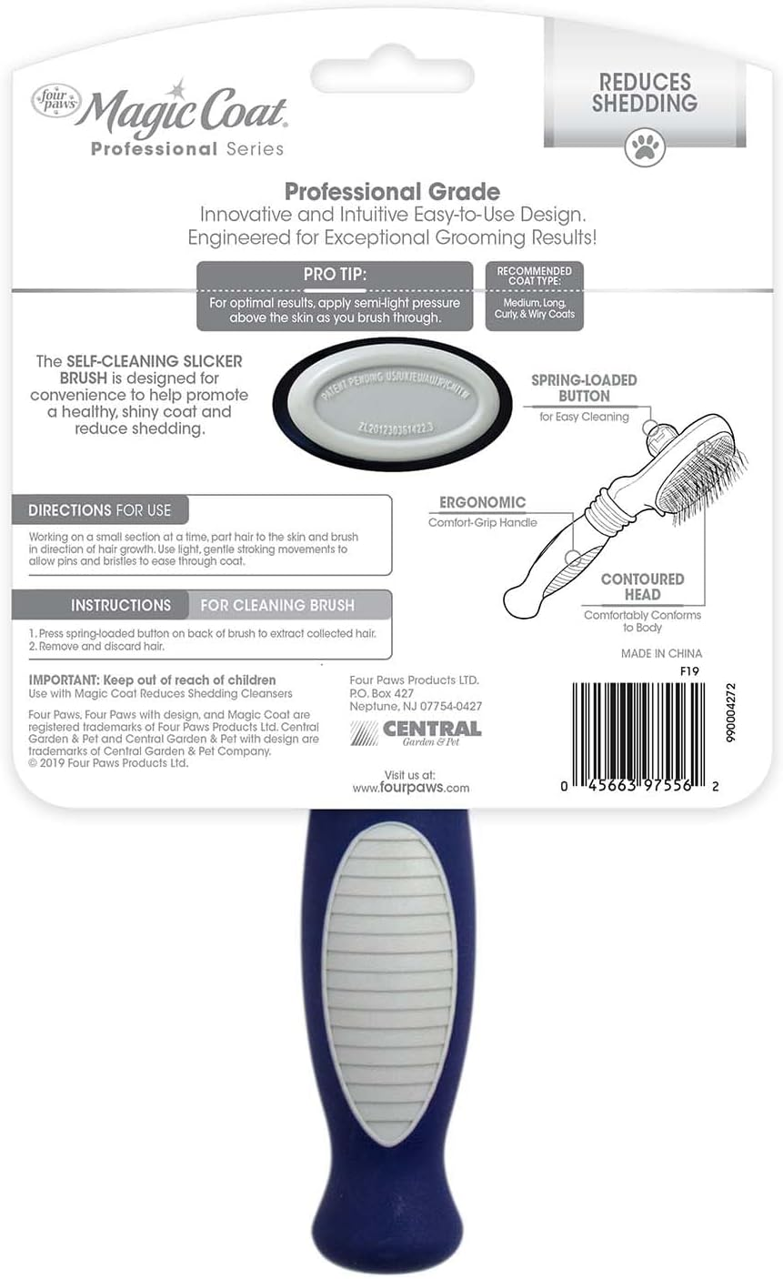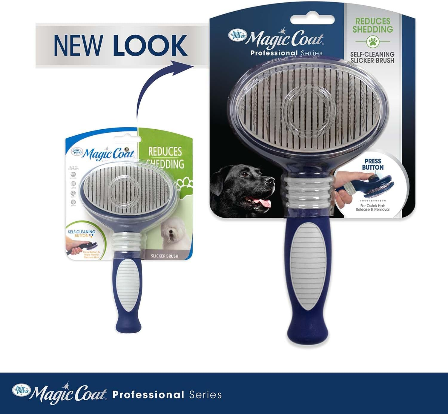 Four Paws Slicker Brush, Professional Series Grooming Brush for Dogs & Cats, Self-Cleaning, Reduces Shedding, All Coat Types, Blue & Grey