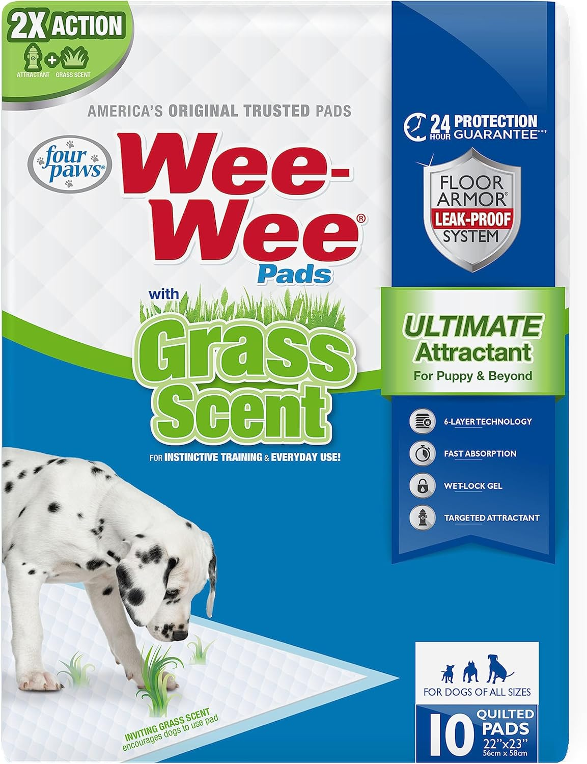 Four Paws Wee-Wee Ultimate Attractant Grass Scented Pee Pads for Dogs & Puppies, Leak-Proof Dog Housebreaking Instinctive Potty Training Floor Protection
