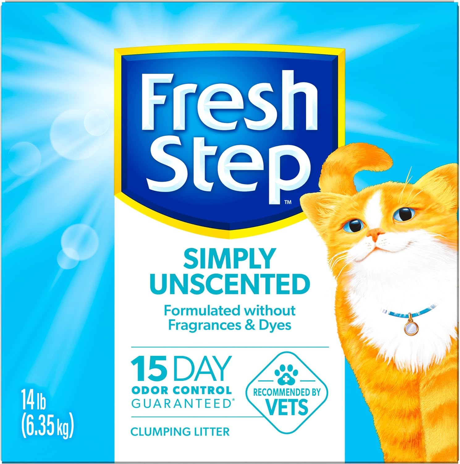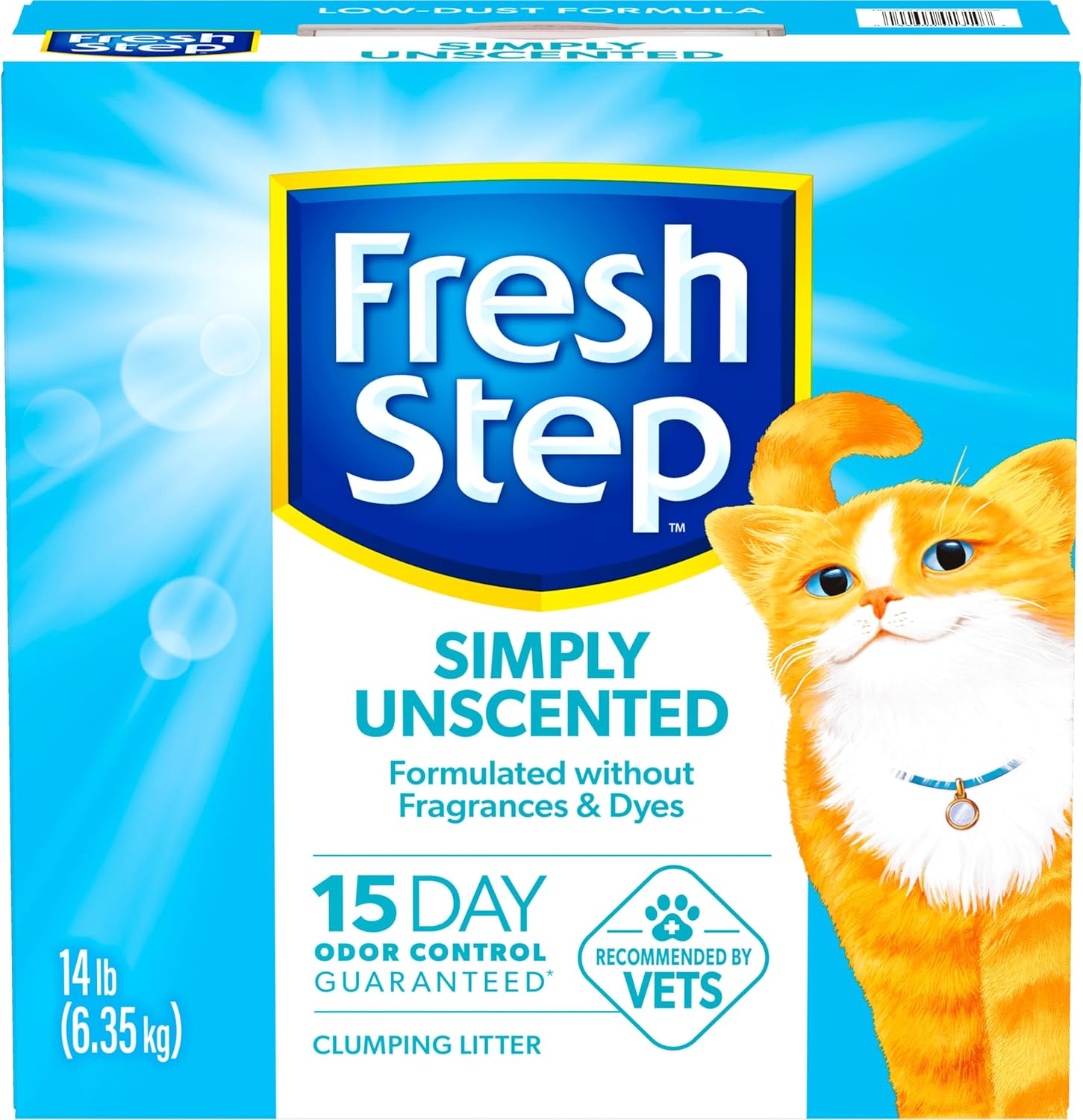 Fresh Step Simply Unscented Clumping Litter, Fresh Step Unscented Cat Litter With Activated Charcoal Technology, 14 lb. Box