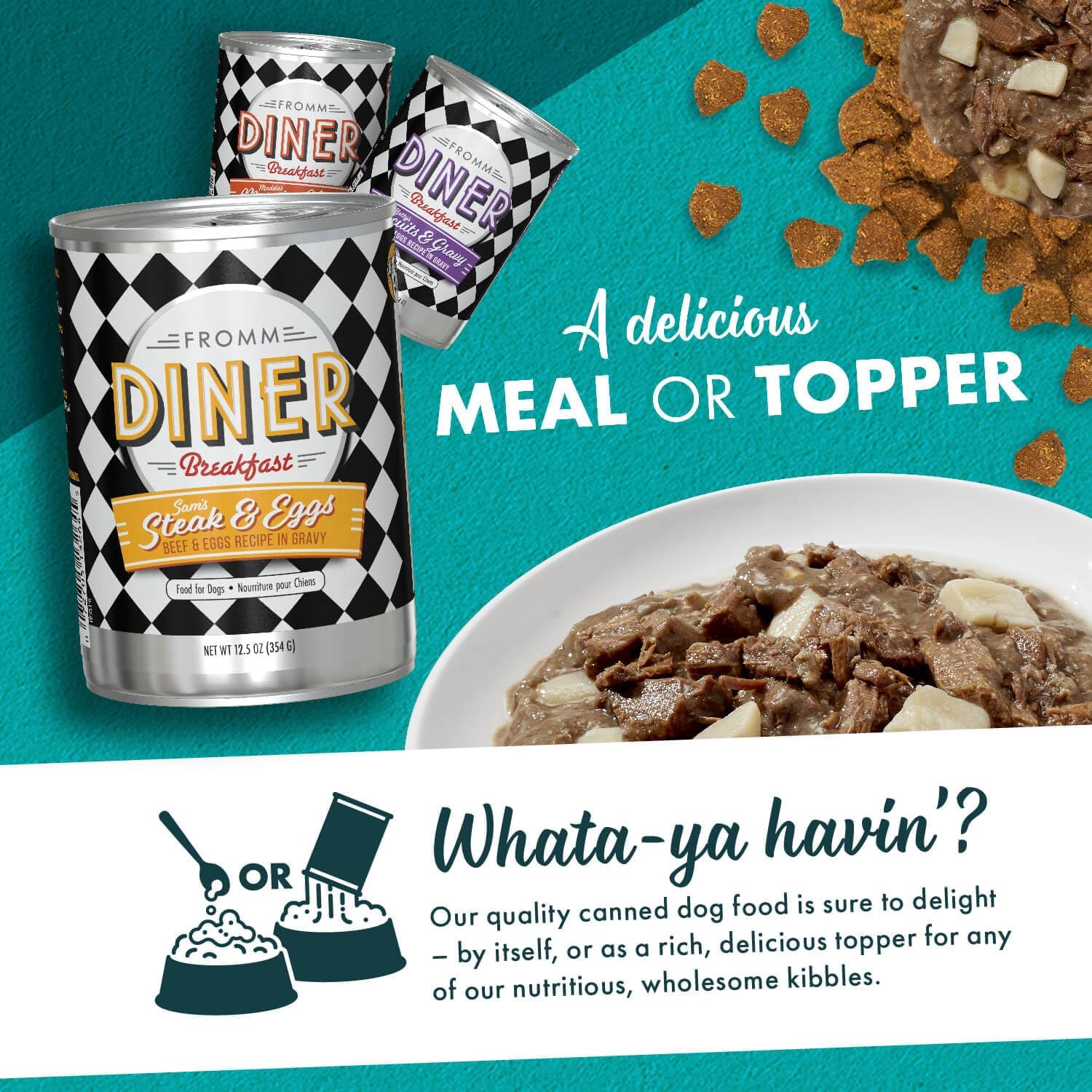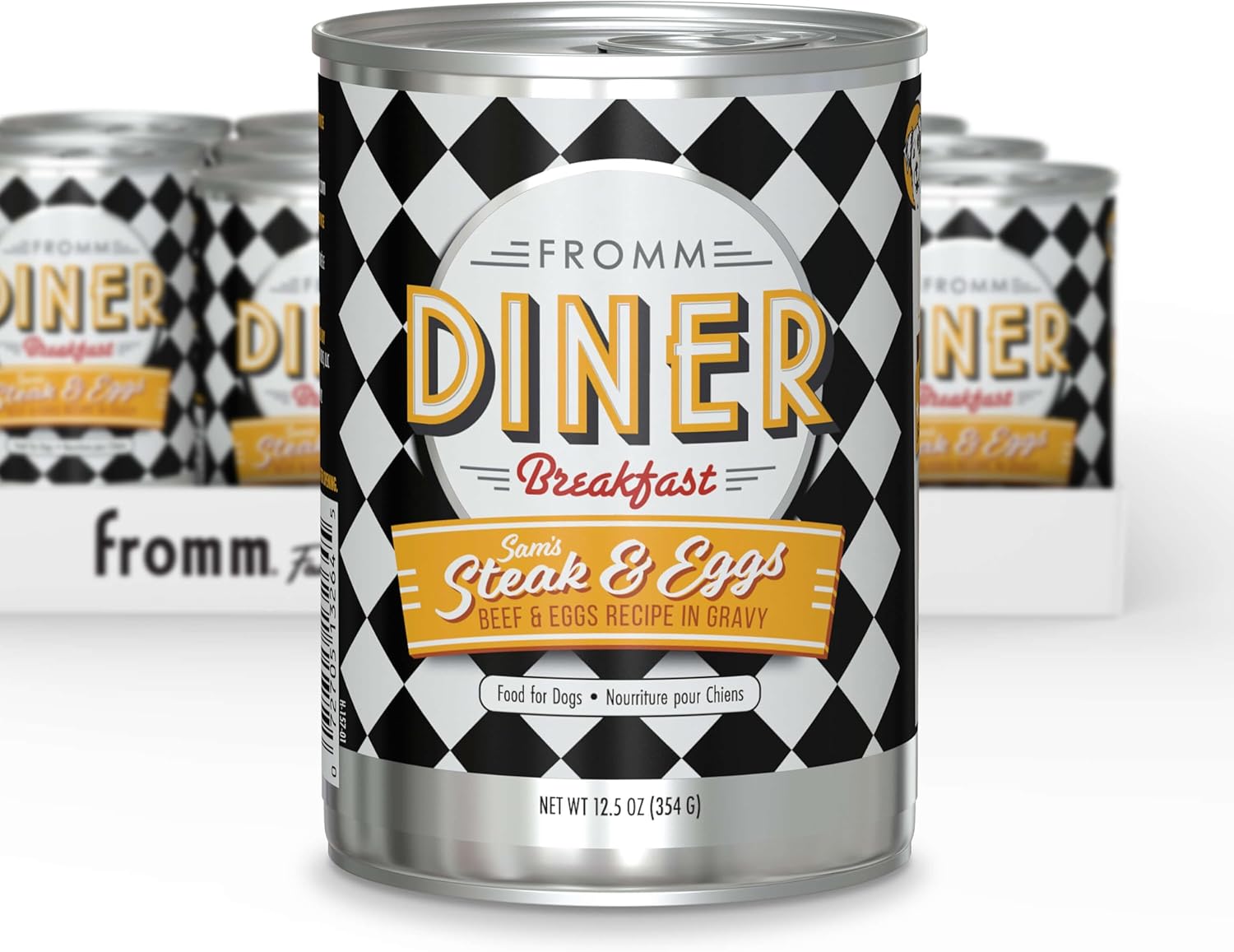 Fromm Diner Breakfast Sam's Steak & Eggs Beef & Eggs Recipe in Gravy Dog Food - Premium Wet Dog Food - Beef Recipe - Case of 12 Cans
