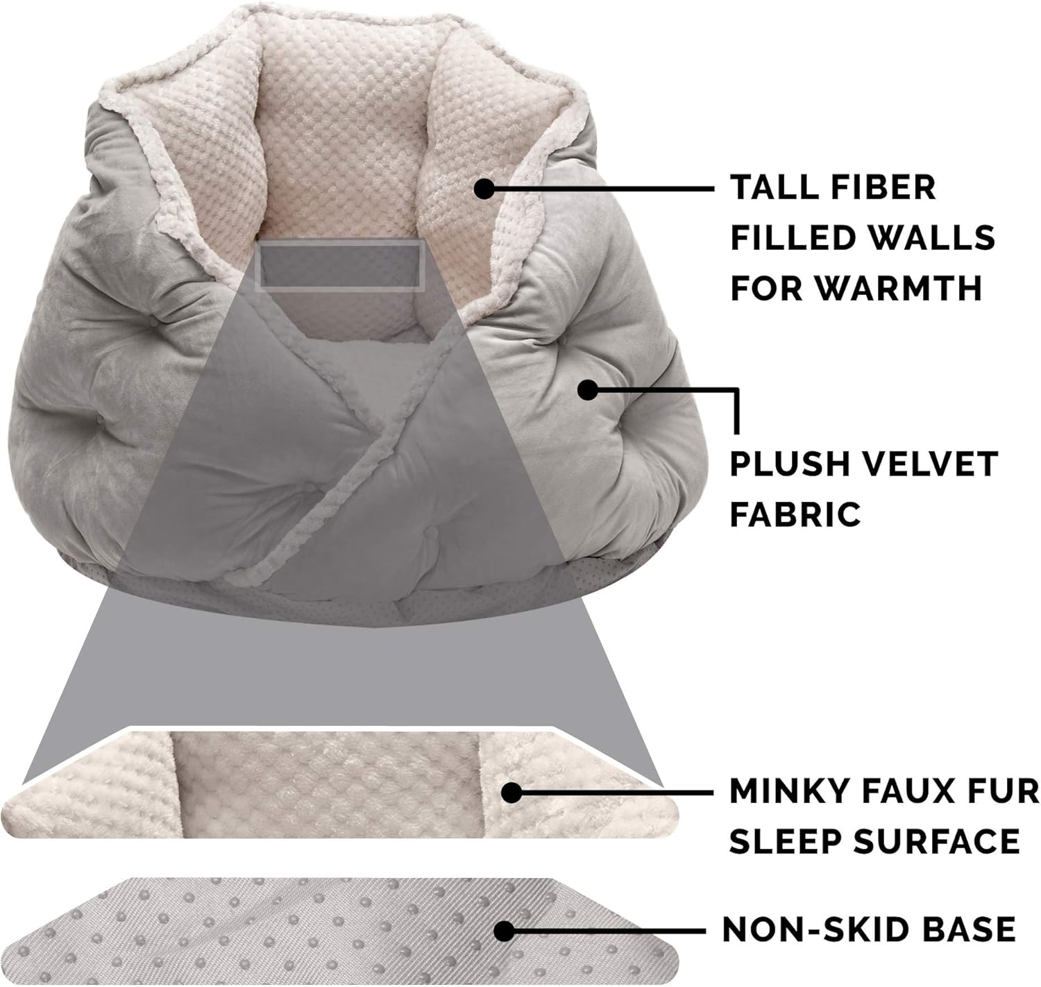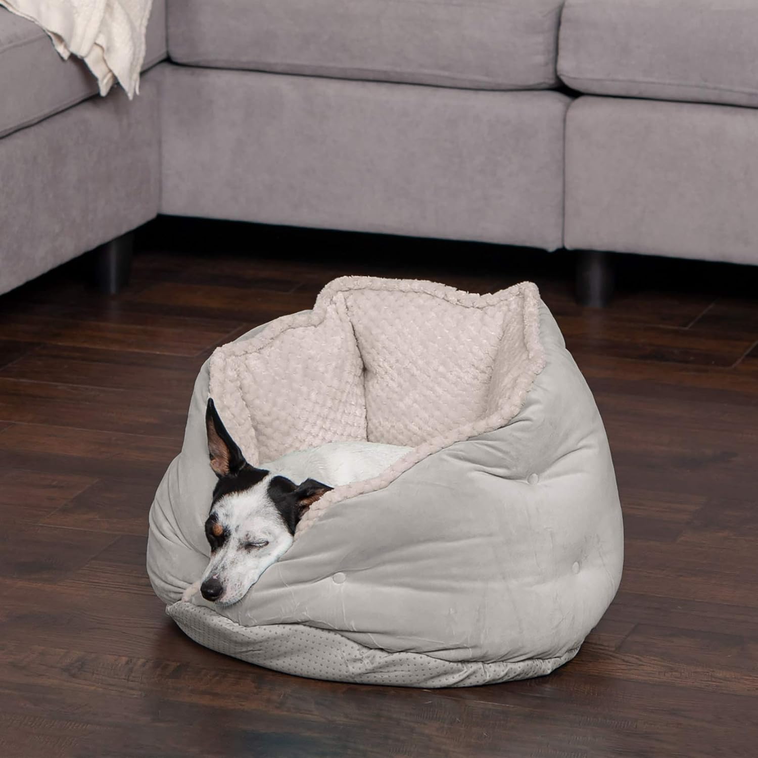 Furhaven 18" Round Pet Bed for Indoor Cats & Small Dogs, 100% Washable, For Pets Up to 14 lbs - Minky Plush & Velvet Hug Bed - Silver Gray, 18-inch