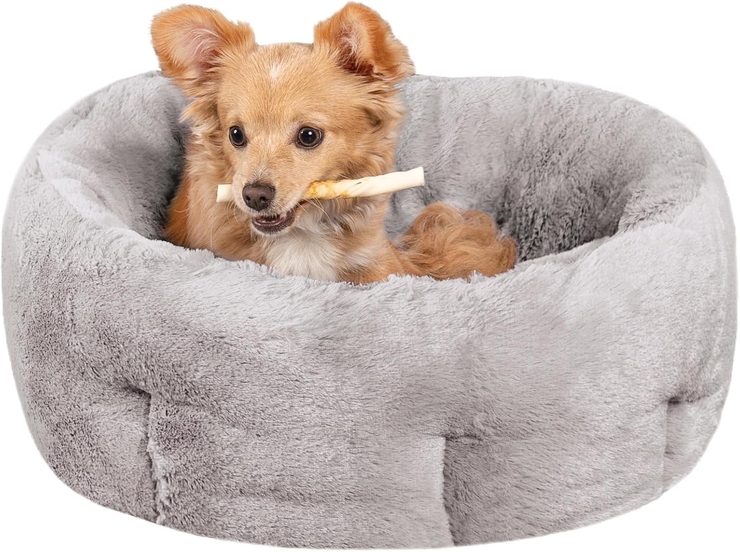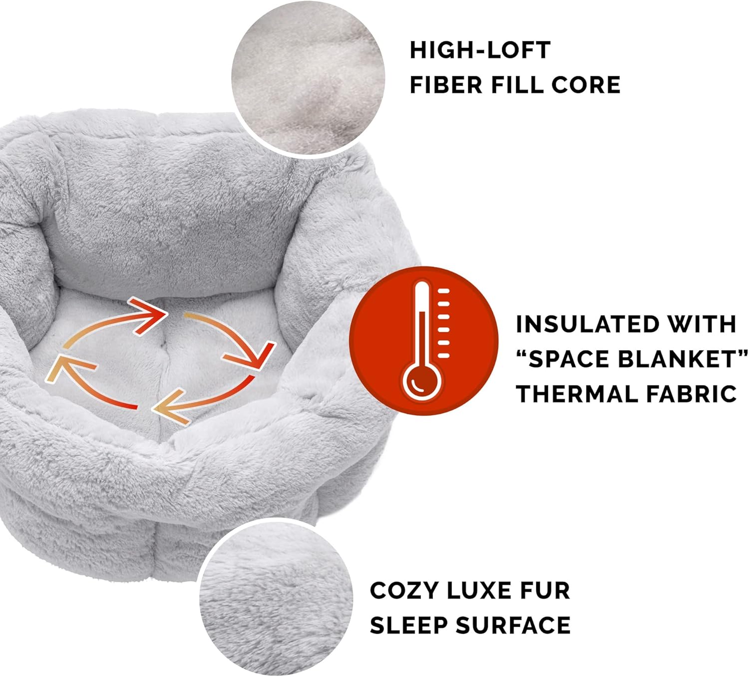 Furhaven 20" Round Self-Warming Pet Bed for Indoor Cats & Small Dogs, 100% Washable, For Pets Up to 20 lbs - Hi Lo Plush Luxe Faux Fur Cuddler - Gray, Small