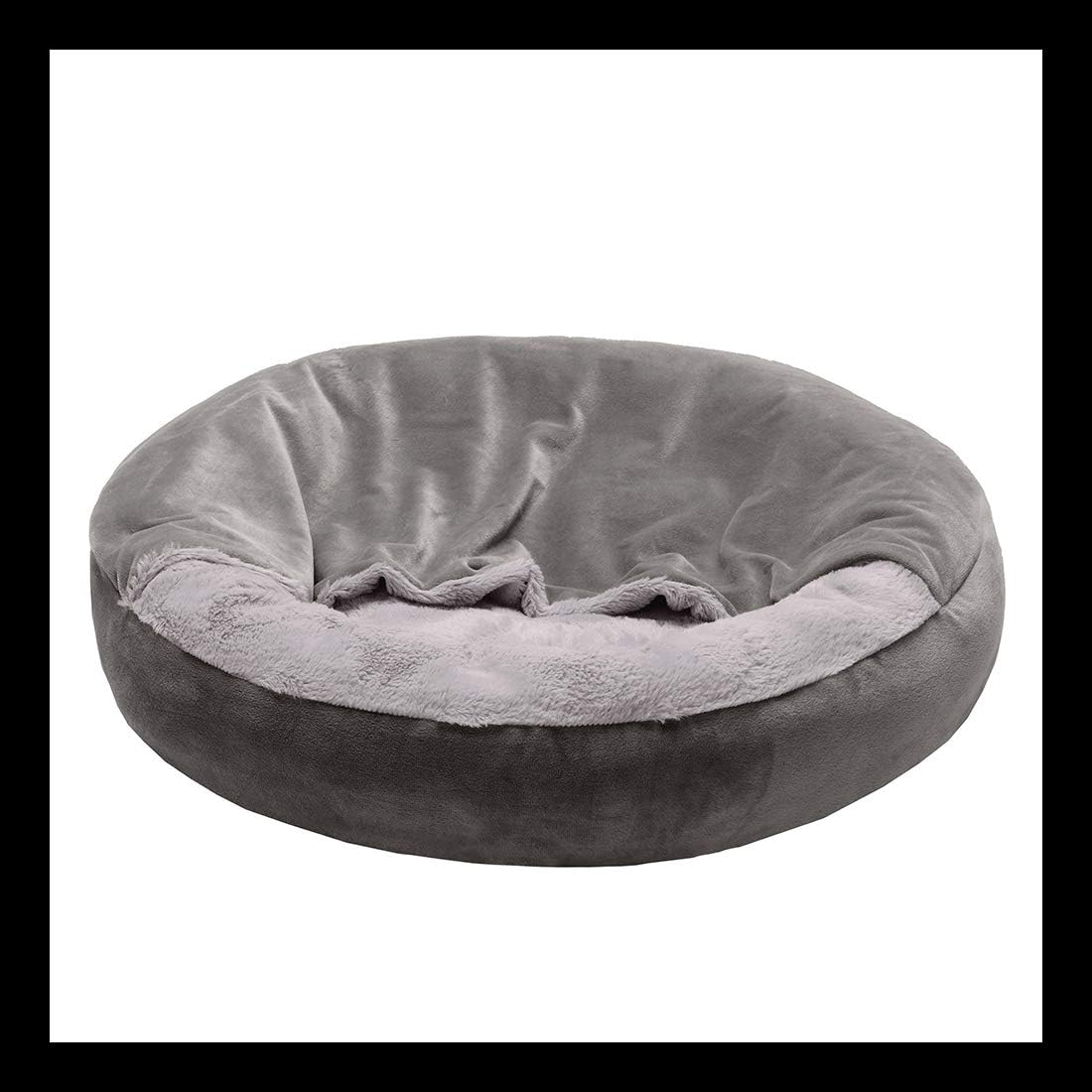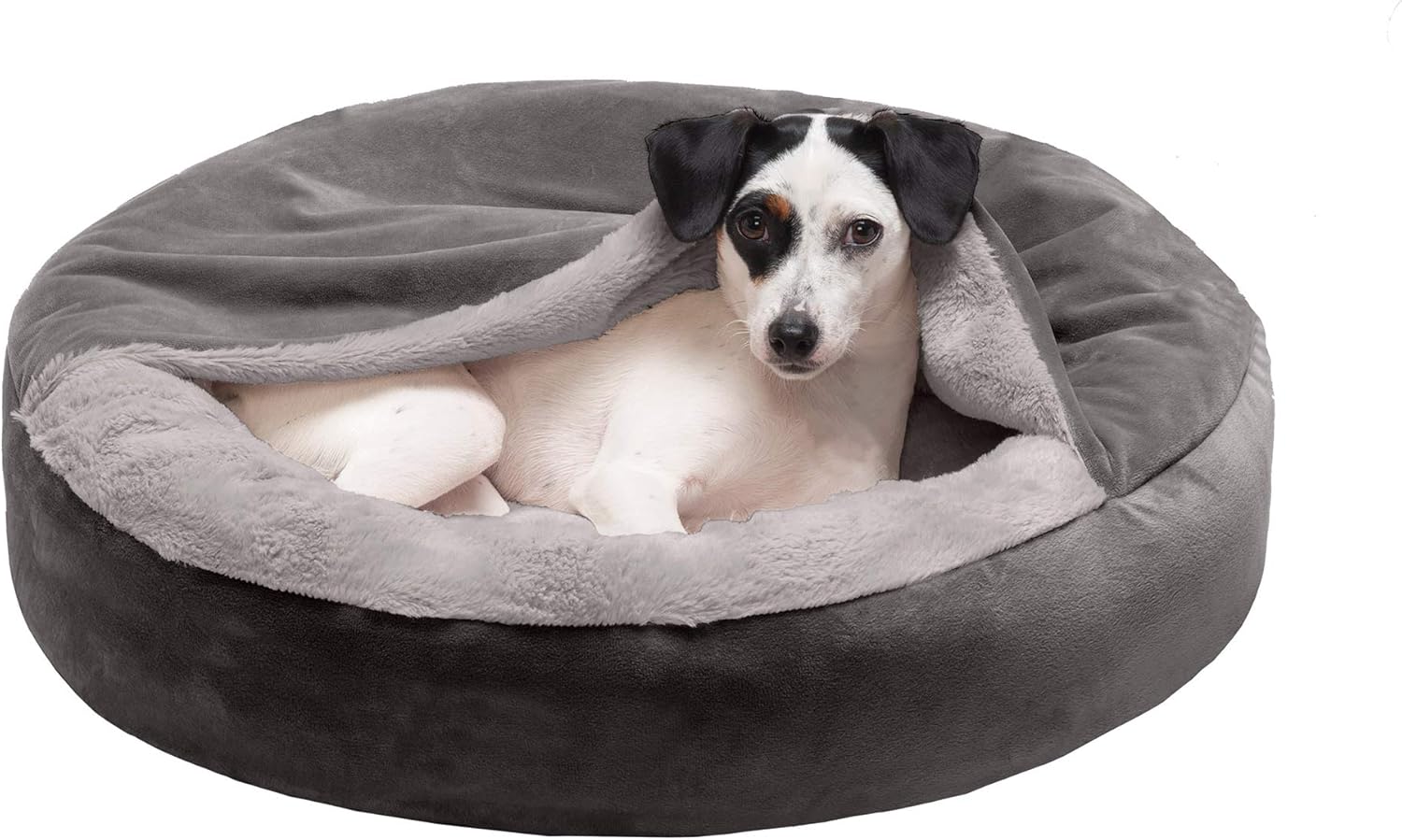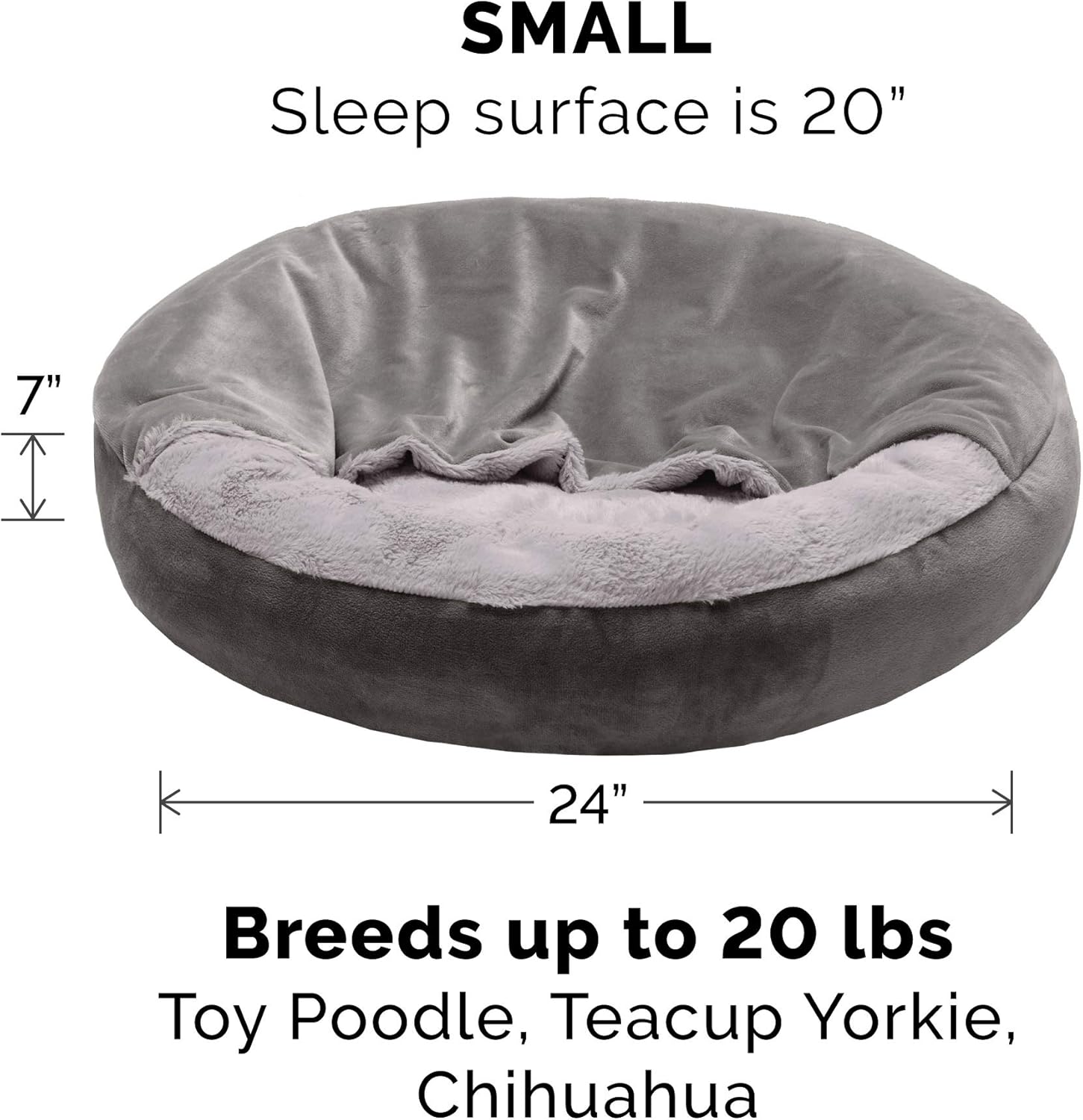 Furhaven 24" Round Calming Donut Dog Bed for Indoor Cats & Small Dogs, Washable, For Dogs Up to 20 lbs - Plush Velvet Waves Hooded Donut Bed