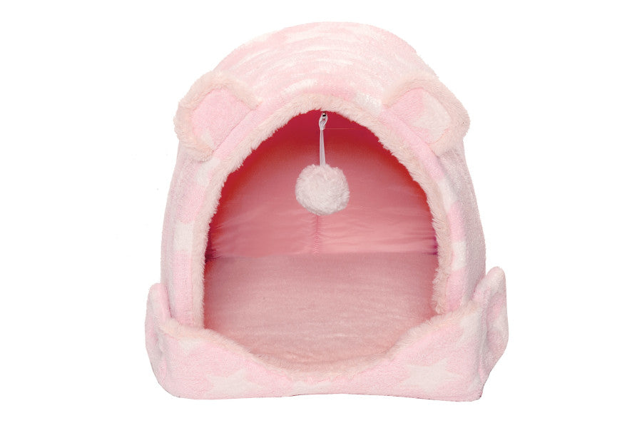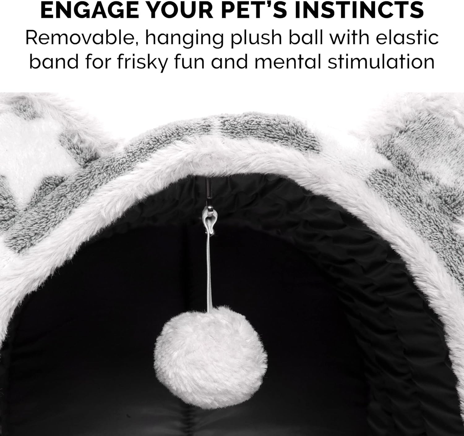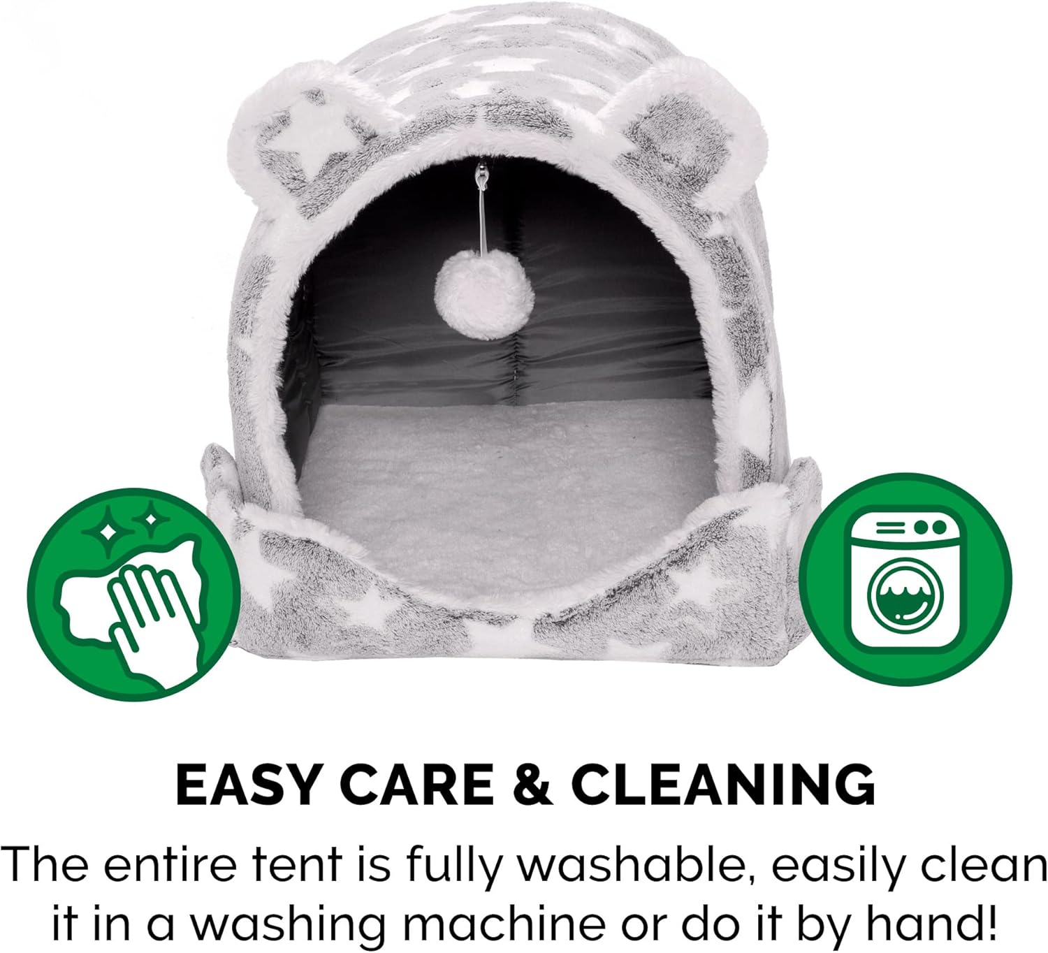 Furhaven Cat Bed Snuggle Hideout for Indoor Cats & Small Dogs, Washable & Foldable w/ Plush Ball Toy - Snuggle Hideout-Bear Pet Tent, Small