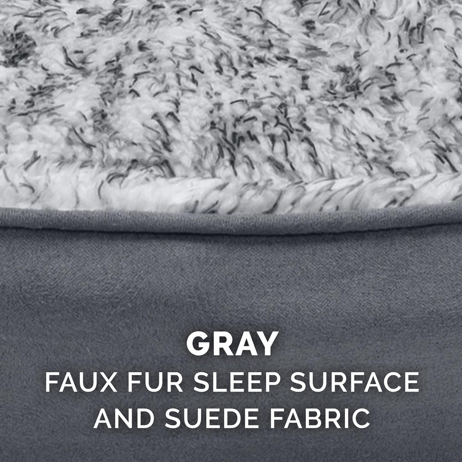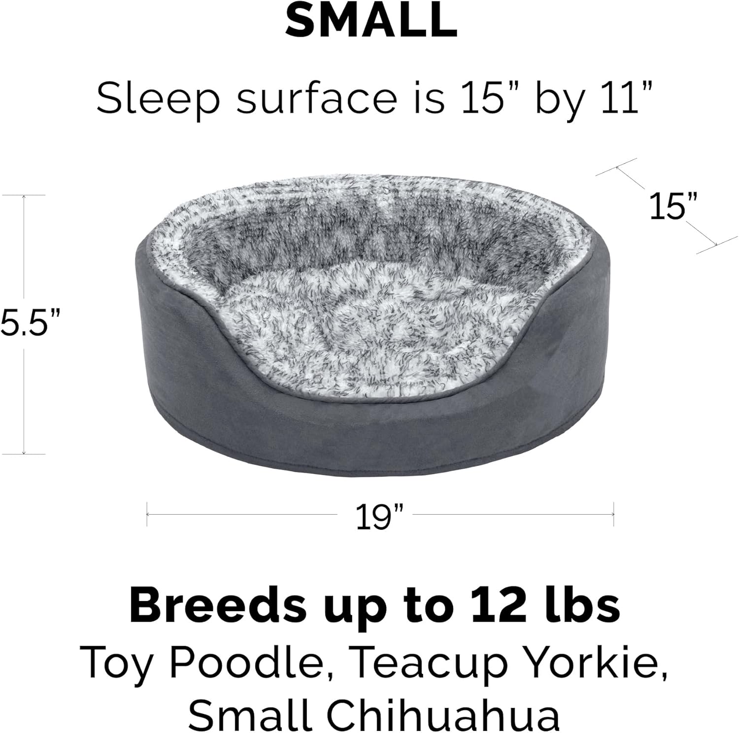Furhaven Dog Bed for Small Dogs w/ Removable Washable Cover & Pillow Cushion Insert, For Dogs Up to 12 lbs - Two-Tone Faux Fur & Suede Oval Lounger - Gray, Small
