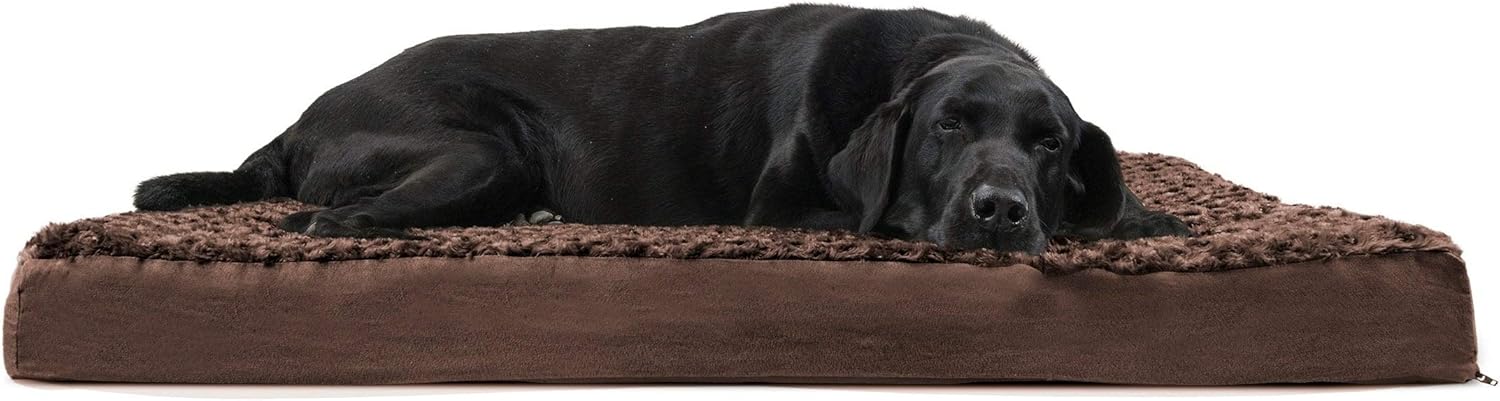 Furhaven Orthopedic Dog Bed for Large Dogs w/ Removable Washable Cover, For Dogs Up to 95 lbs - Ultra Plush Faux Fur & Suede Mattress - Chocolate