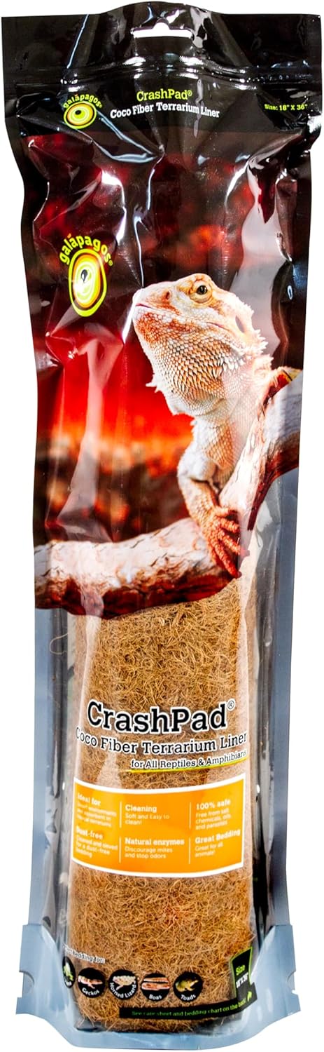 Galápagos CrashPad Coco Fiber Terrarium Liner - Coconut Fiber Substrate for Reptile Tank Accessories, Bearded Dragon, Leopard Gecko, Hermit Crab, and Snake Enclosures, 18 x 36 in, Natural