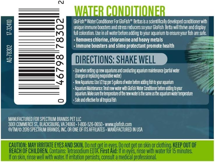 GloFish Water Conditioner Makes Tap Water Safe for Aquariums Betta Fish, 2 fl. oz, 2 FZ, Model Number: AQ-78302