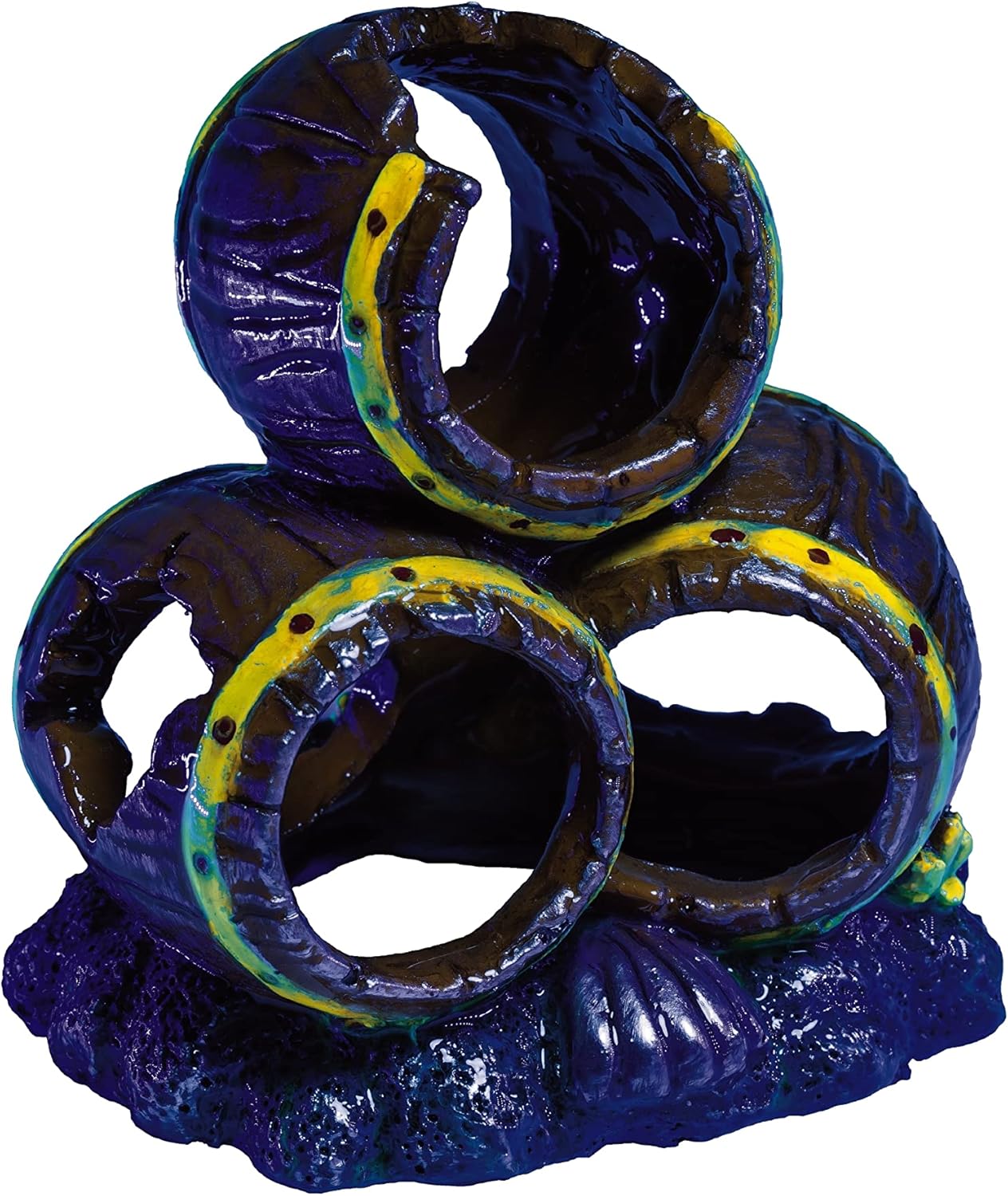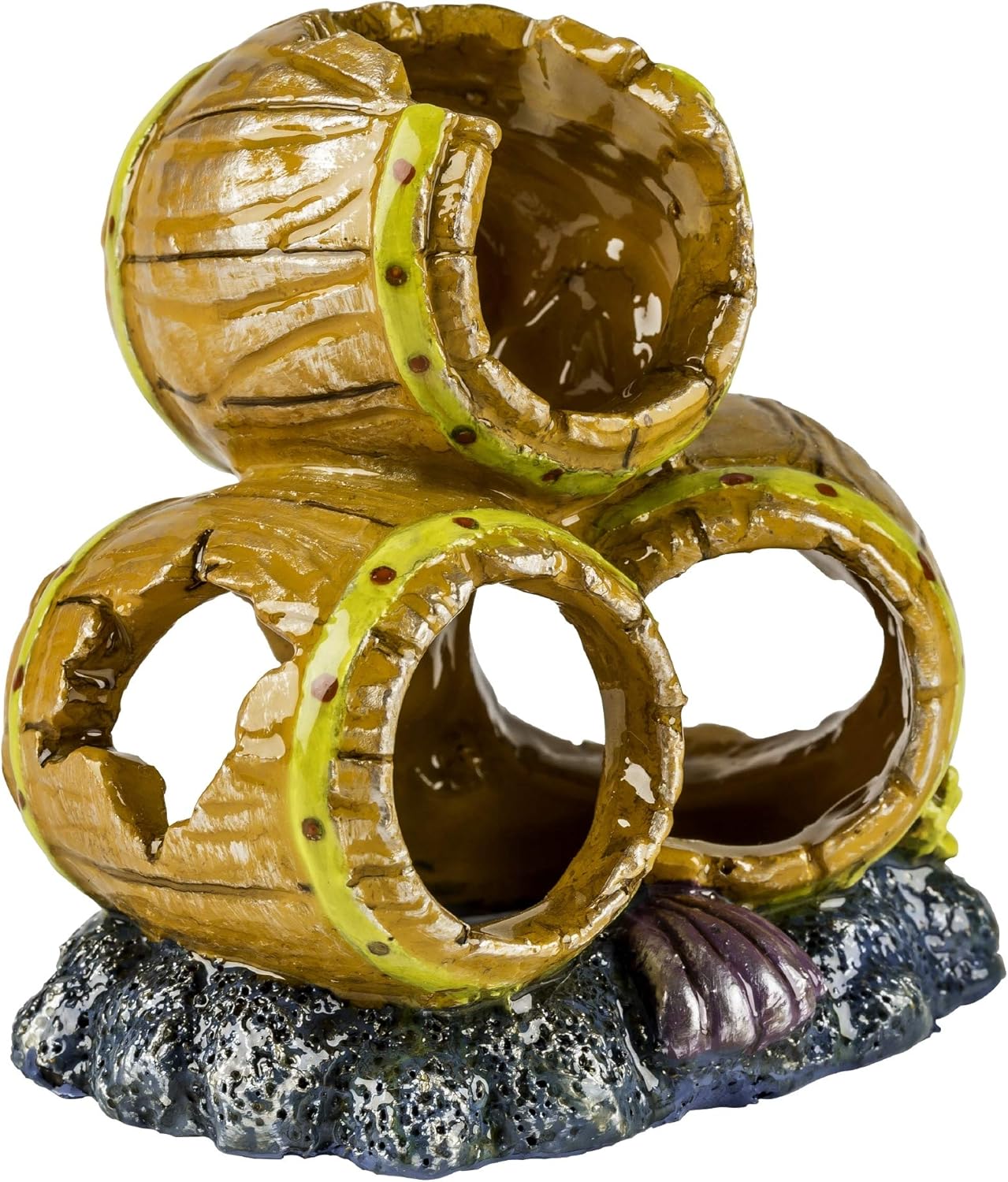 GloFish Barrels Ornament for Aquarium, Large,Blue/Brown