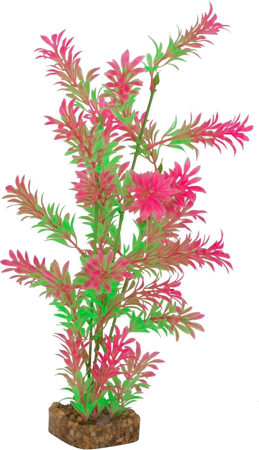 GloFish Plant Aquarium Décor, Green and Pink Large, Fluorescent Under Blue LED Light