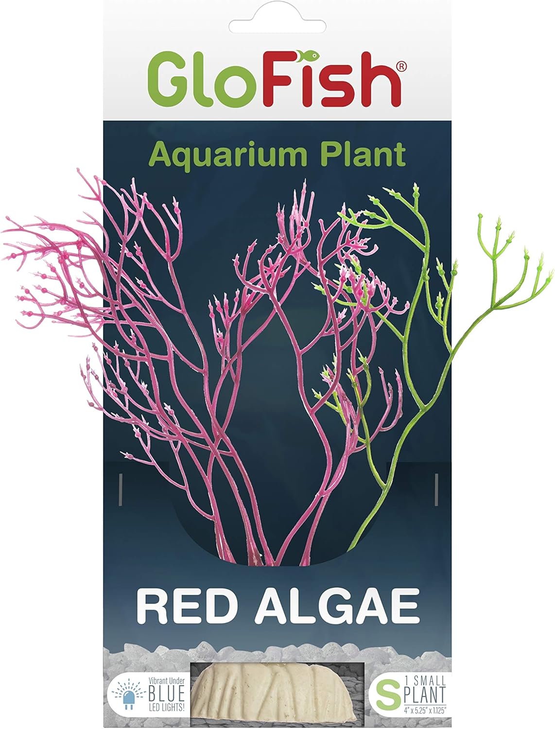 GloFish Red Algae Plant Aquarium Décor, Red Small, Fluorescent Under Blue LED Light