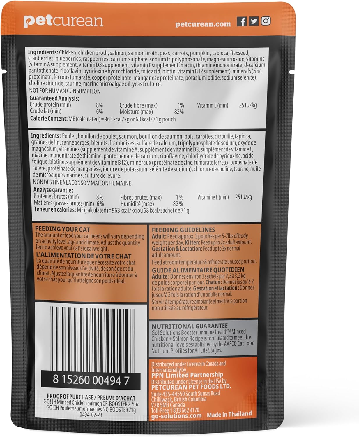 Go! Solutions Booster Immune Health, Grain-Free Wet Cat Food Topper , 2.5 oz Pouch