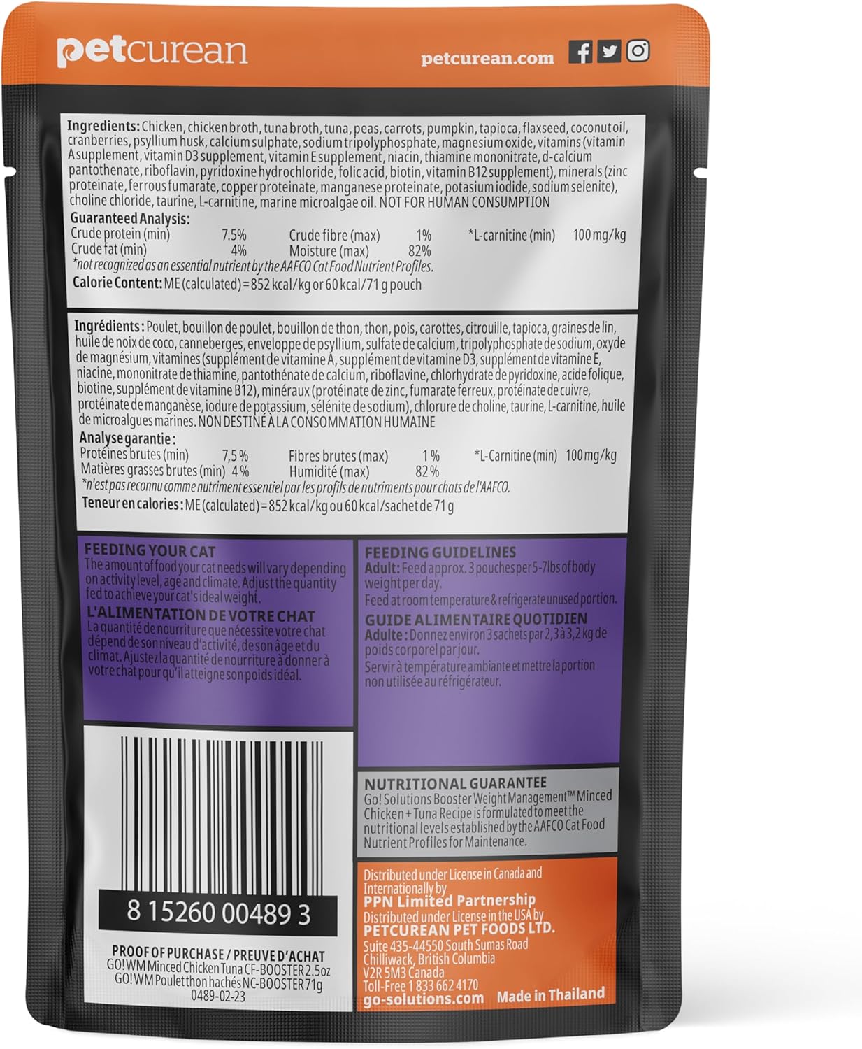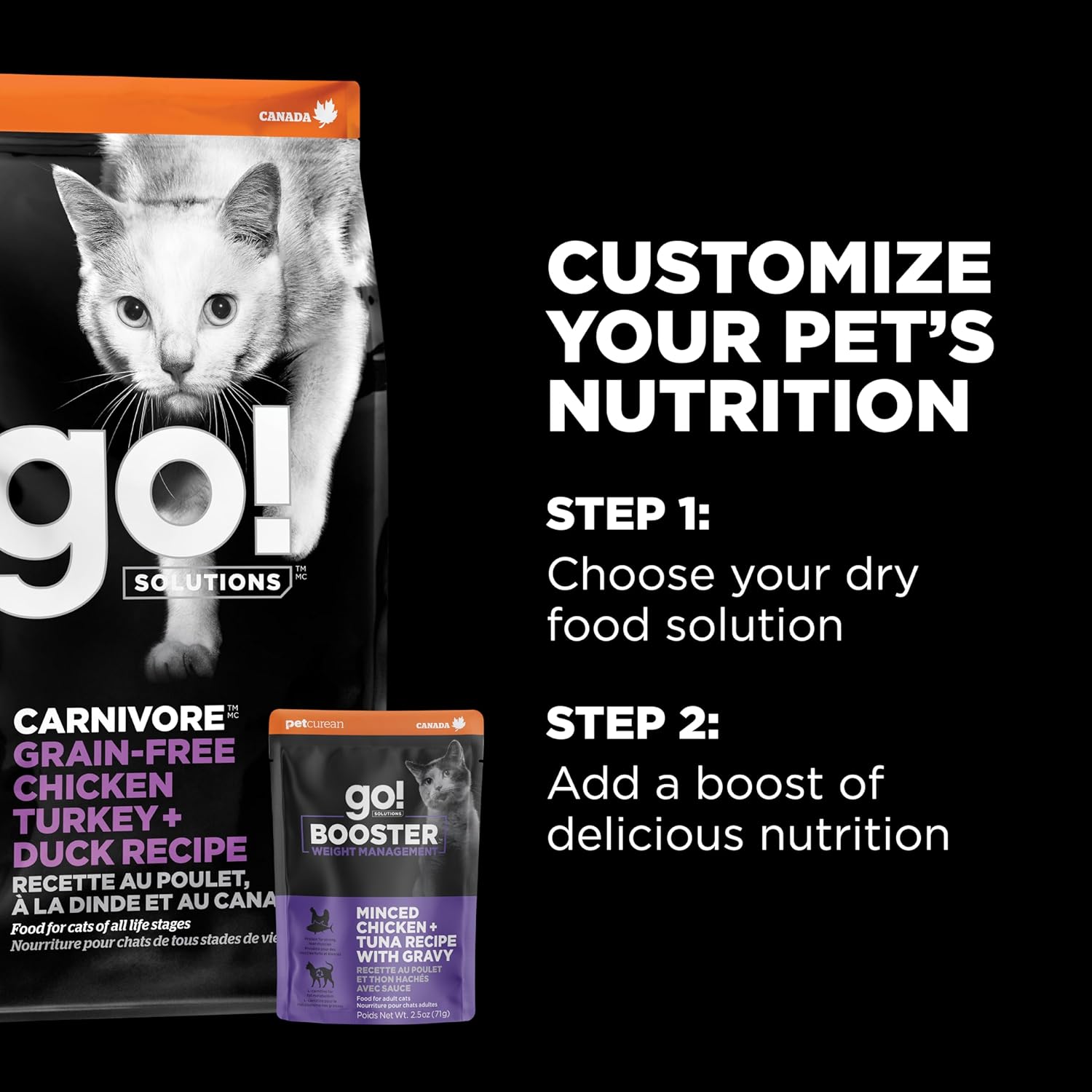 Go! Solutions Booster Weight Management, Grain-Free Wet Cat Food Topper, Minced Chicken and Tuna in Gravy, 2.5 oz Pouch (Pack of 12)