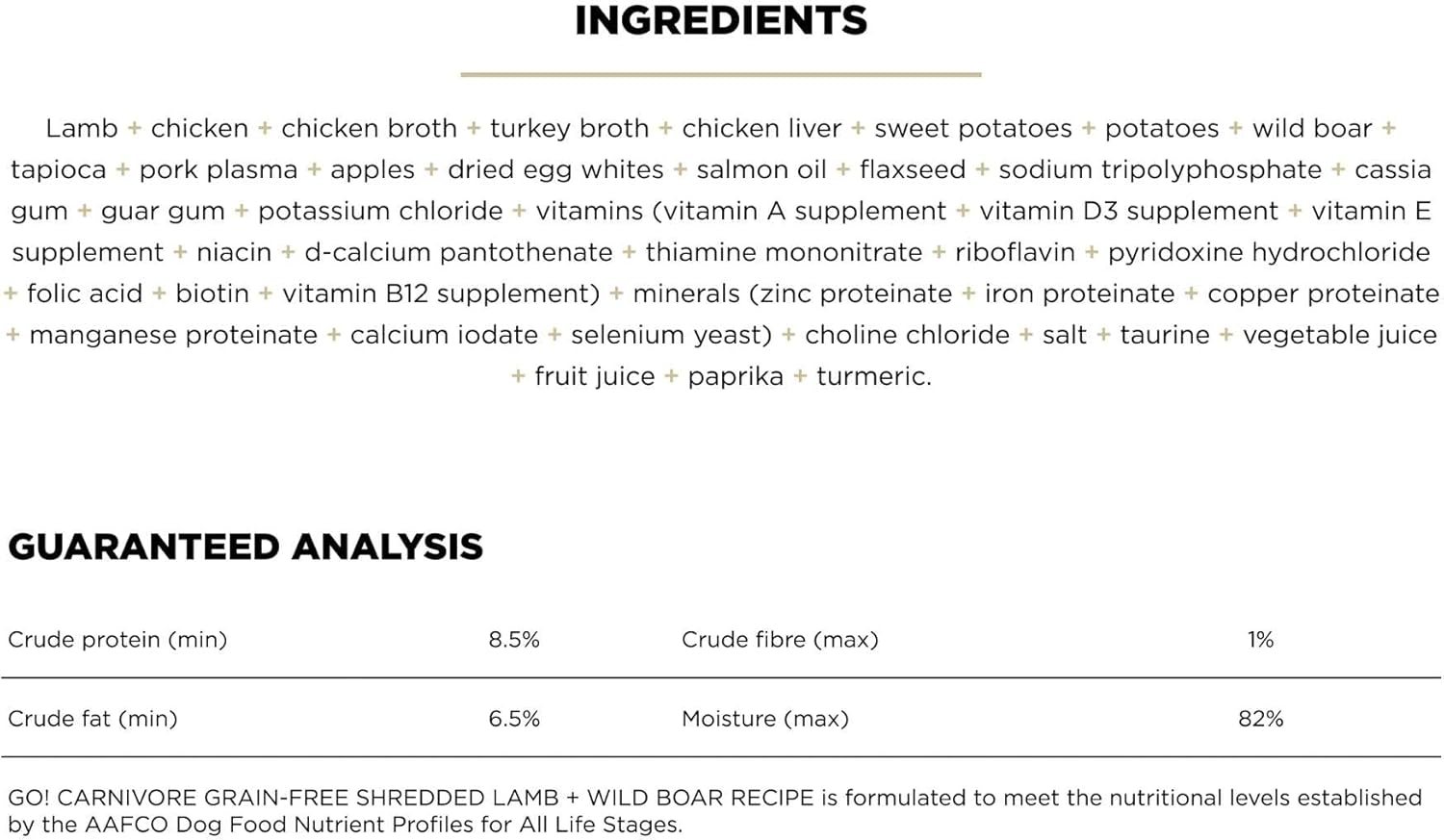 Brand Go! Solutions Flavor Carnivore - Shredded Lamb, Wild Boar Age Range (Description) All Life Stages Item...