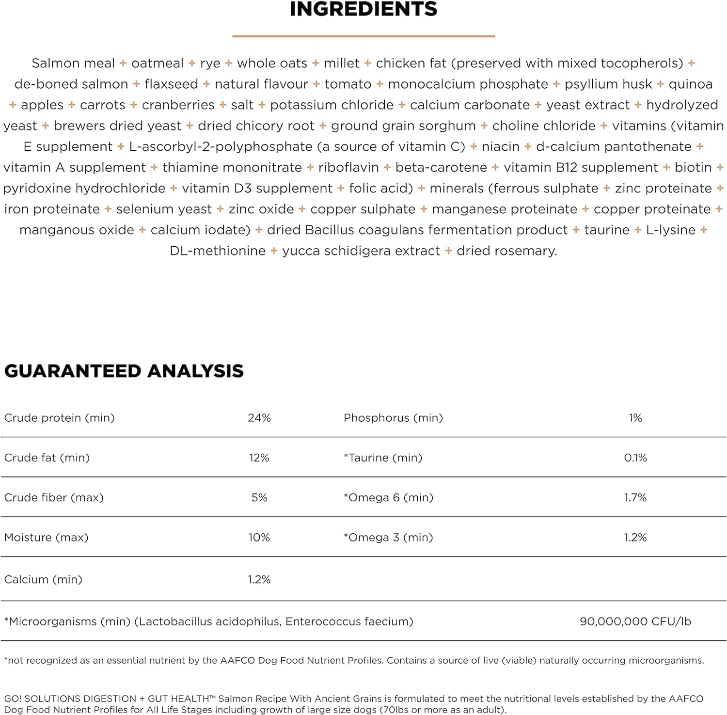 Go! Solutions Digestion + Gut Health, Dry Dog Food, Salmon Recipe with Ancient Grains