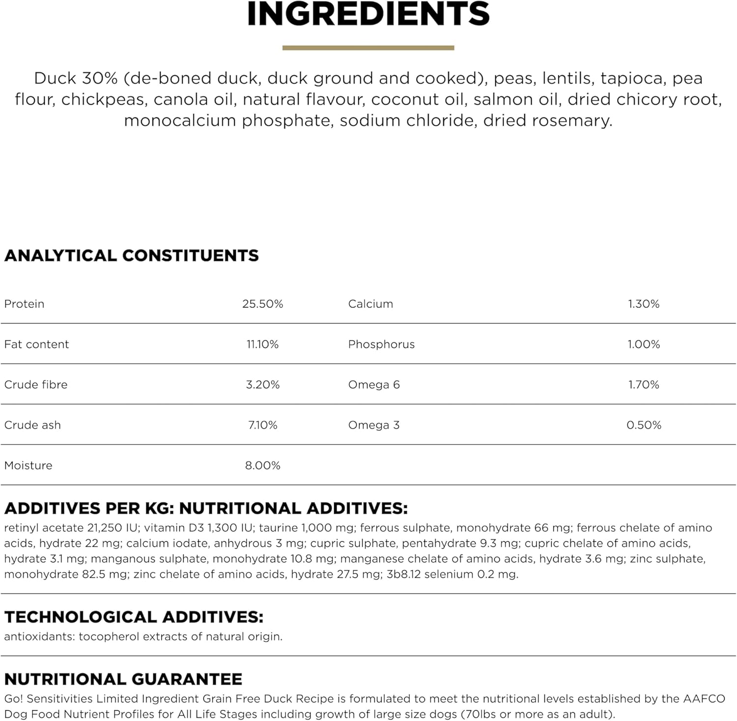 Go! Solutions Sensitivities Limited Ingredients, Grain-Free Dry Dog Food, Duck Recipe for Sensitive Stomach