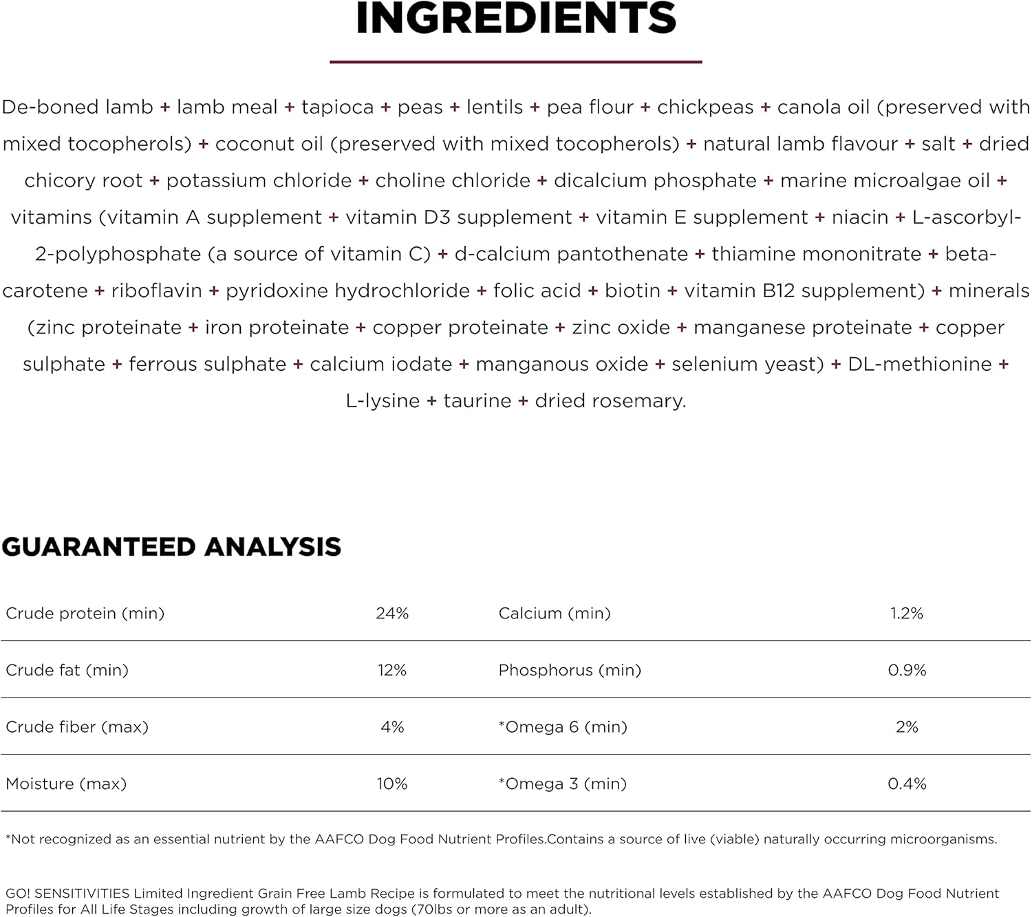 Brand Go! Solutions Flavor Lamb Age Range (Description) All Life Stages Item Form Dry - Kibble Specific...