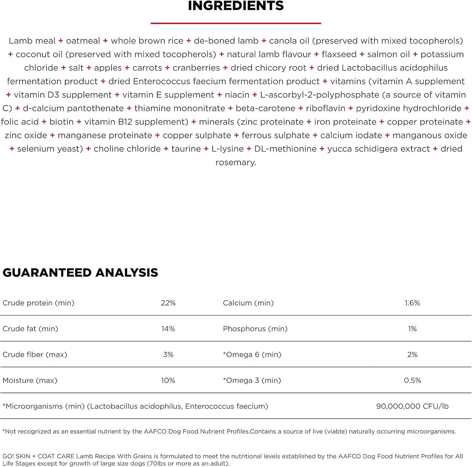 Go! Solutions Skin + Coat Care, Dry Dog Food, Lamb Recipe with Grains