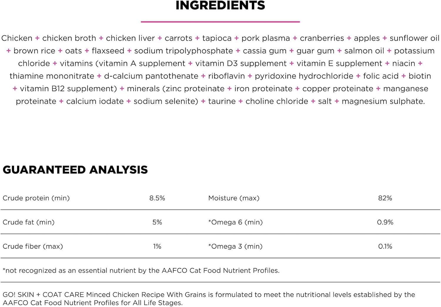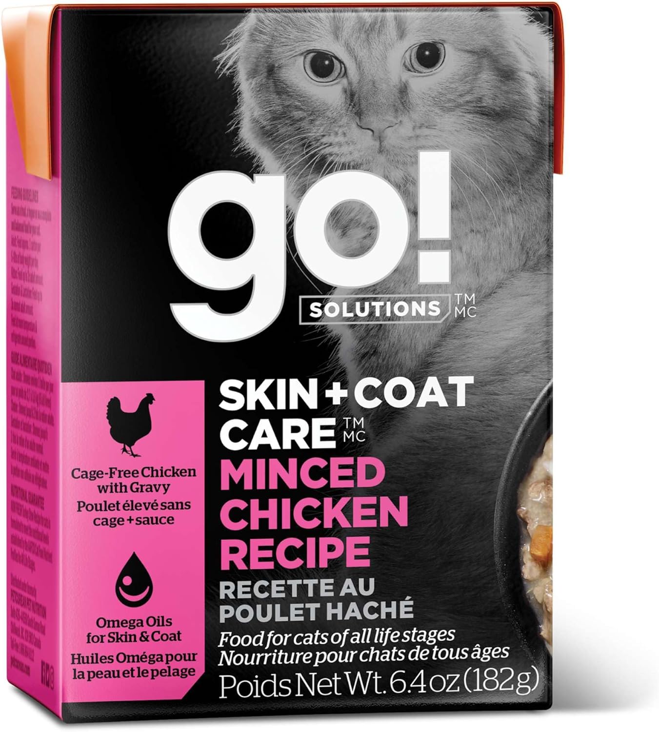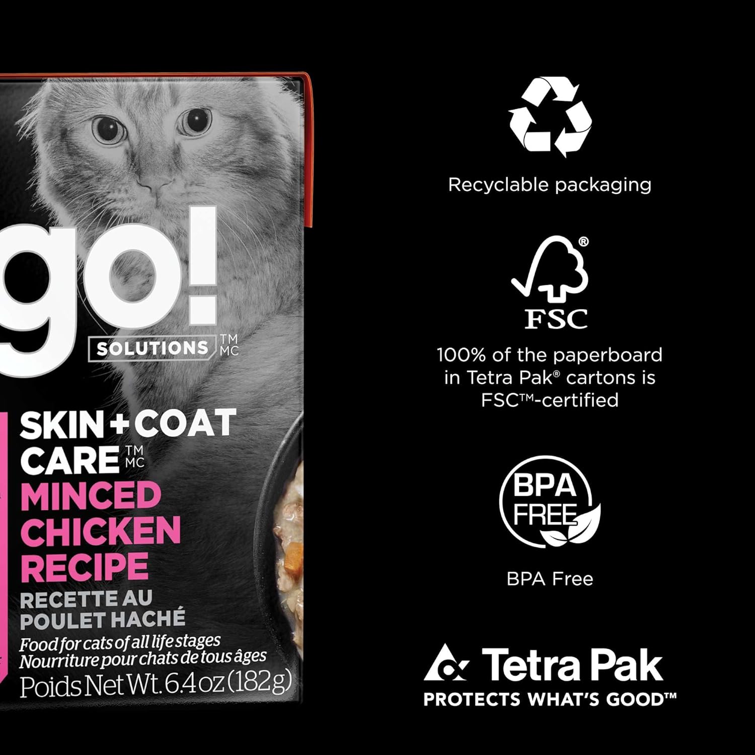 Go! Solutions Skin + Coat Care, Grain-Free Wet Cat Food, Minced Chicken with Gravy Recipe for Sensitive Skin, 6.4 oz