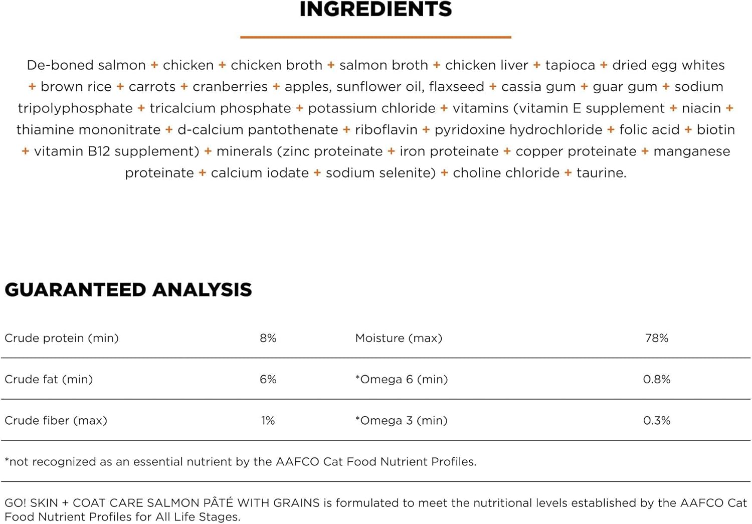 Go! Solutions Skin + Coat Care, Wet Cat Food, Salmon Pâté with Grains for Sensitive Skin, 6.4 oz