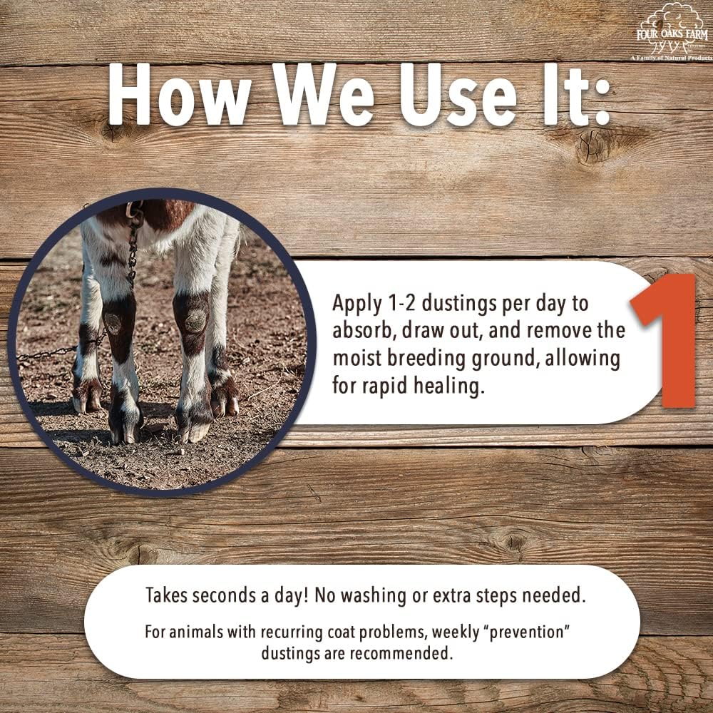 Skin & Coat Issues – Dust daily to remove bacteria/fungus and promote regrowth.