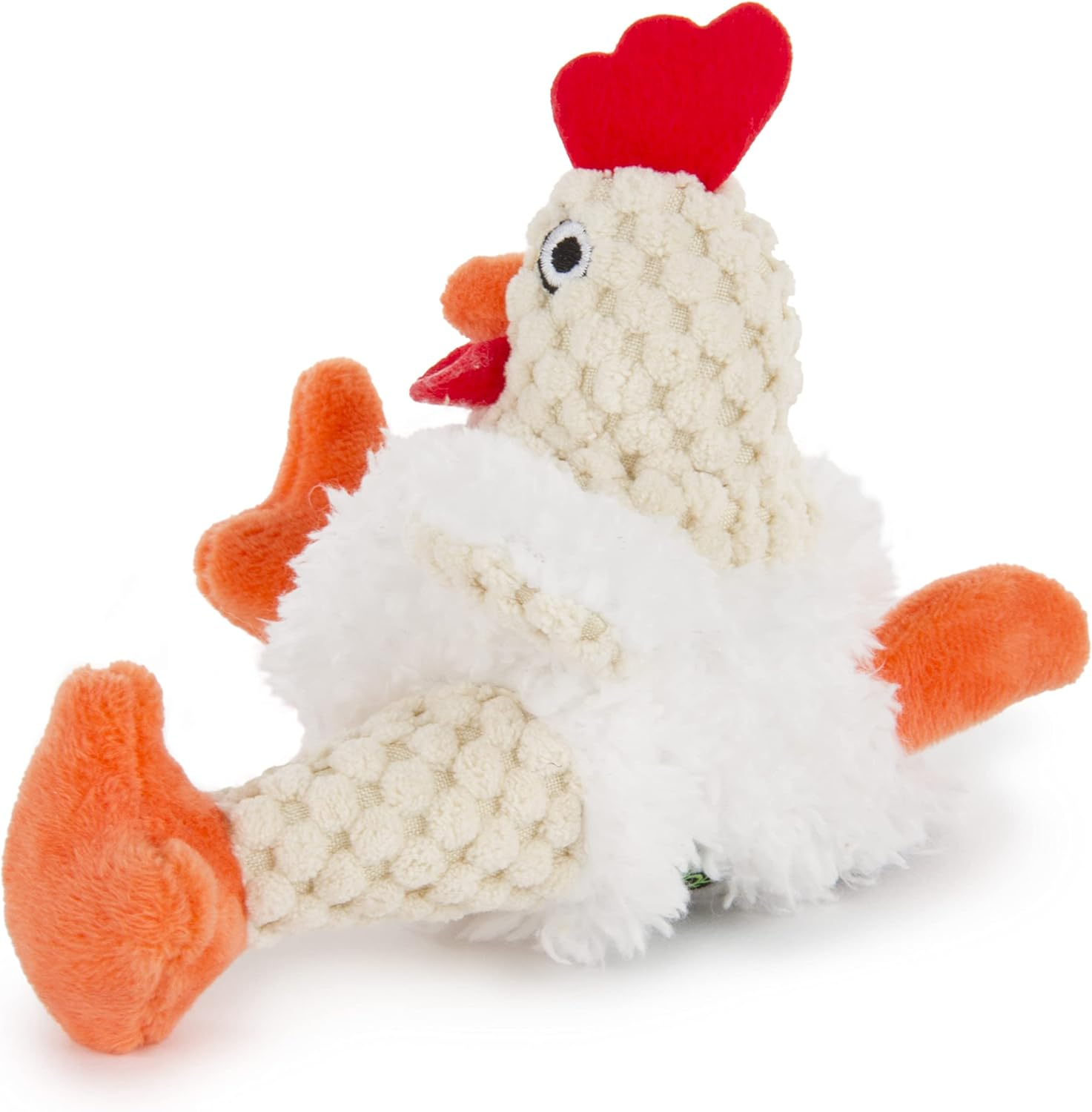 goDog Checkers Just For Me Fat Rooster Squeaky Plush Dog Toy, Chew Guard Technology - White