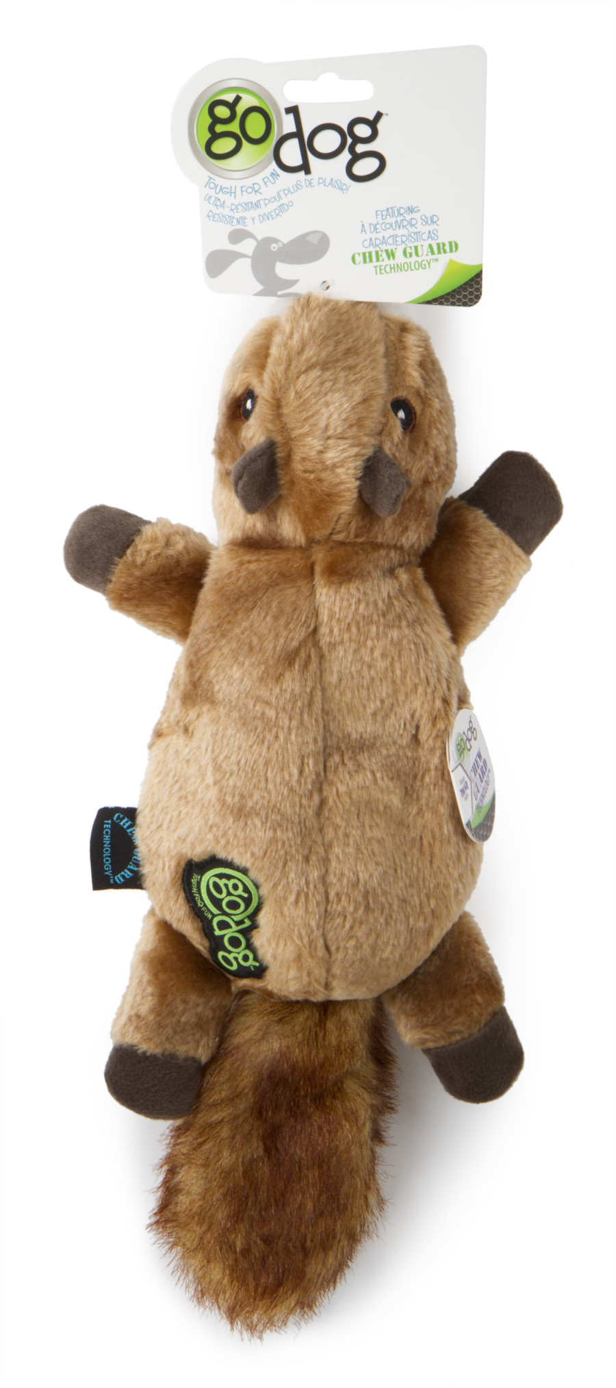 goDog Flatz Squirrel is made with Chew Guard Technology- super tough chew-resistant lining and reinforced seams to withstand rough play these toys are made for hour after hour of chewing fun. This durable toy features an integrated squeaker, unique embroidered details and flat under-stuffed body make this toy more realistic with a fun, floppy feel dogs love to toss around.