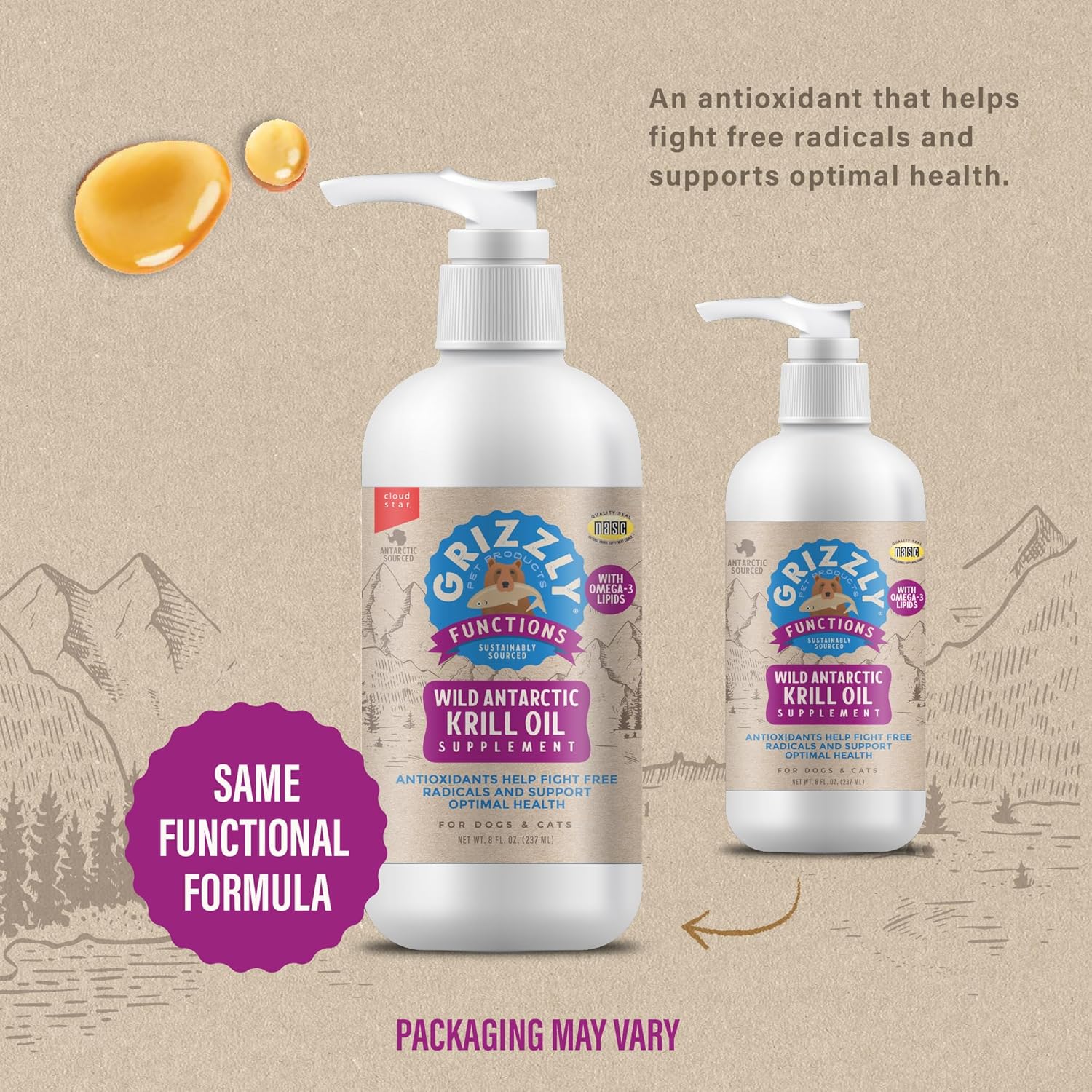 Grizzly Pet Products Krill Oil Liquid Antioxidant Product for Dogs and Cats, 8 Ounce