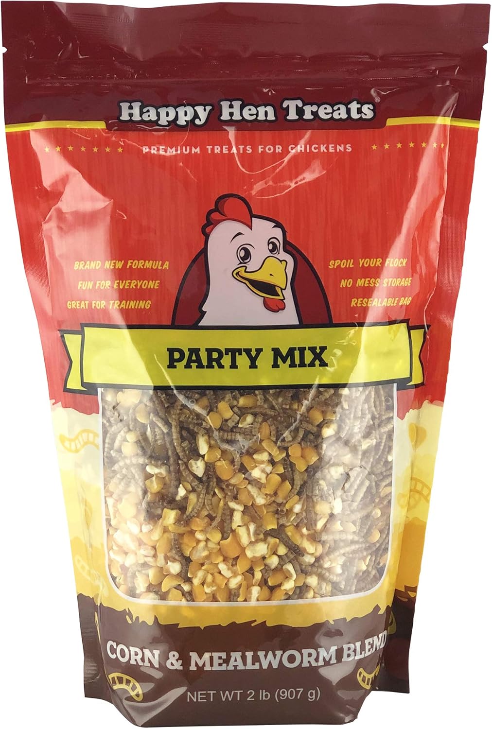Keep your flock happy and engaged with Happy Hen Treats® Party Mix, a specially crafted chicken treat designed for pecking, foraging, and training. Each pouch contains a blend of high-quality ingredients and comes in three delicious variants: