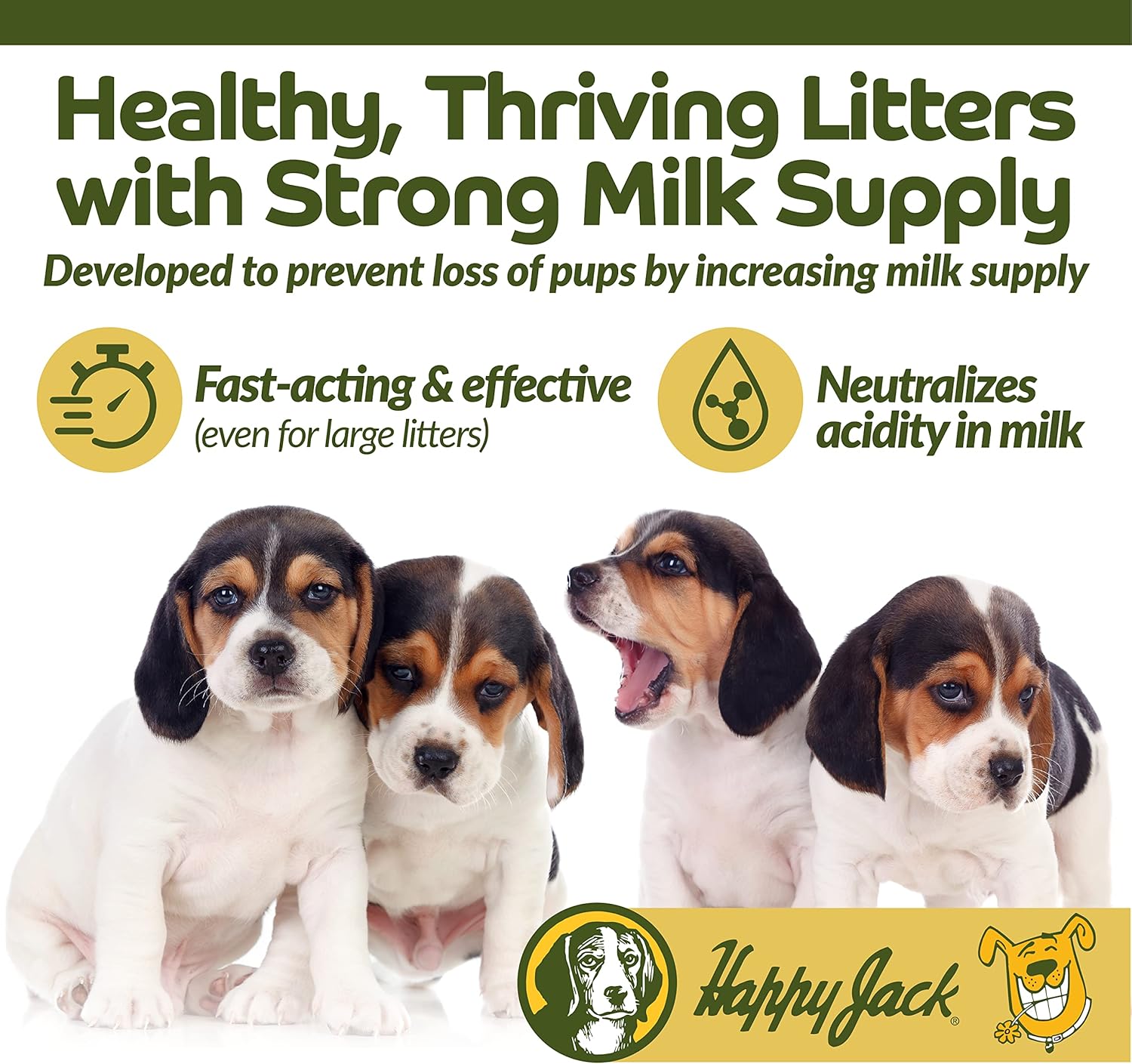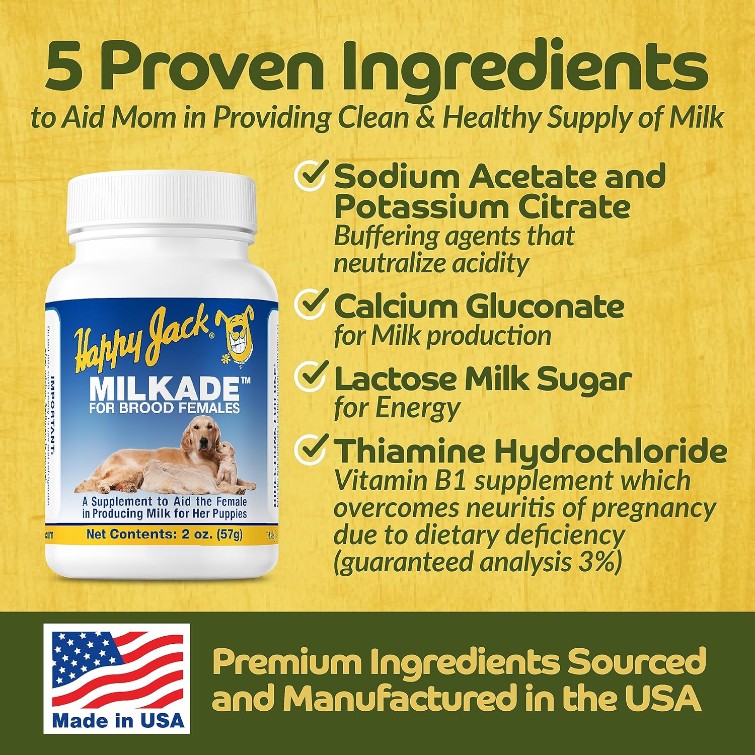 Happy Jack® Milkade is a liquid supplement formulated to support lactating female dogs and help ensure healthy puppy development. Designed for use around whelping, it promotes clean, abundant milk production, helps prevent early pup losses, and supports overall post-whelping health.