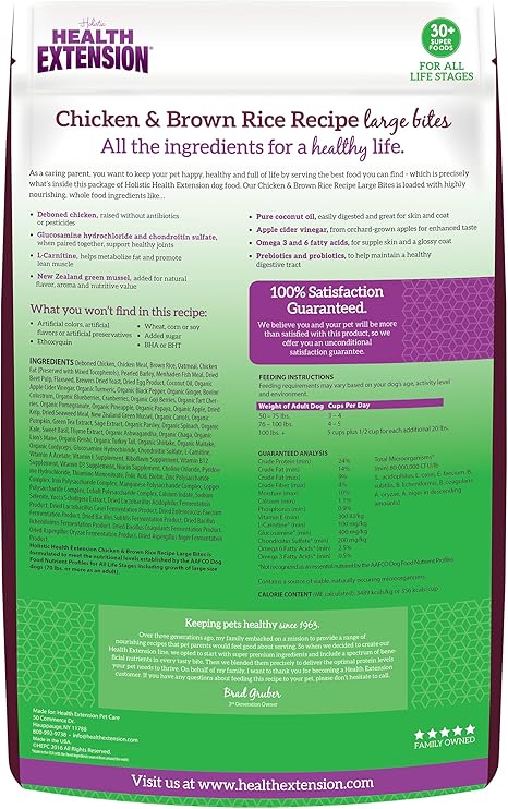 Health Extension Large Bites Chicken & Brown Rice Dry Dog Food (30 lb / 13.61 kg) - Protein-Rich Formula with Probiotics & Essential Nutrients for Larger Breeds