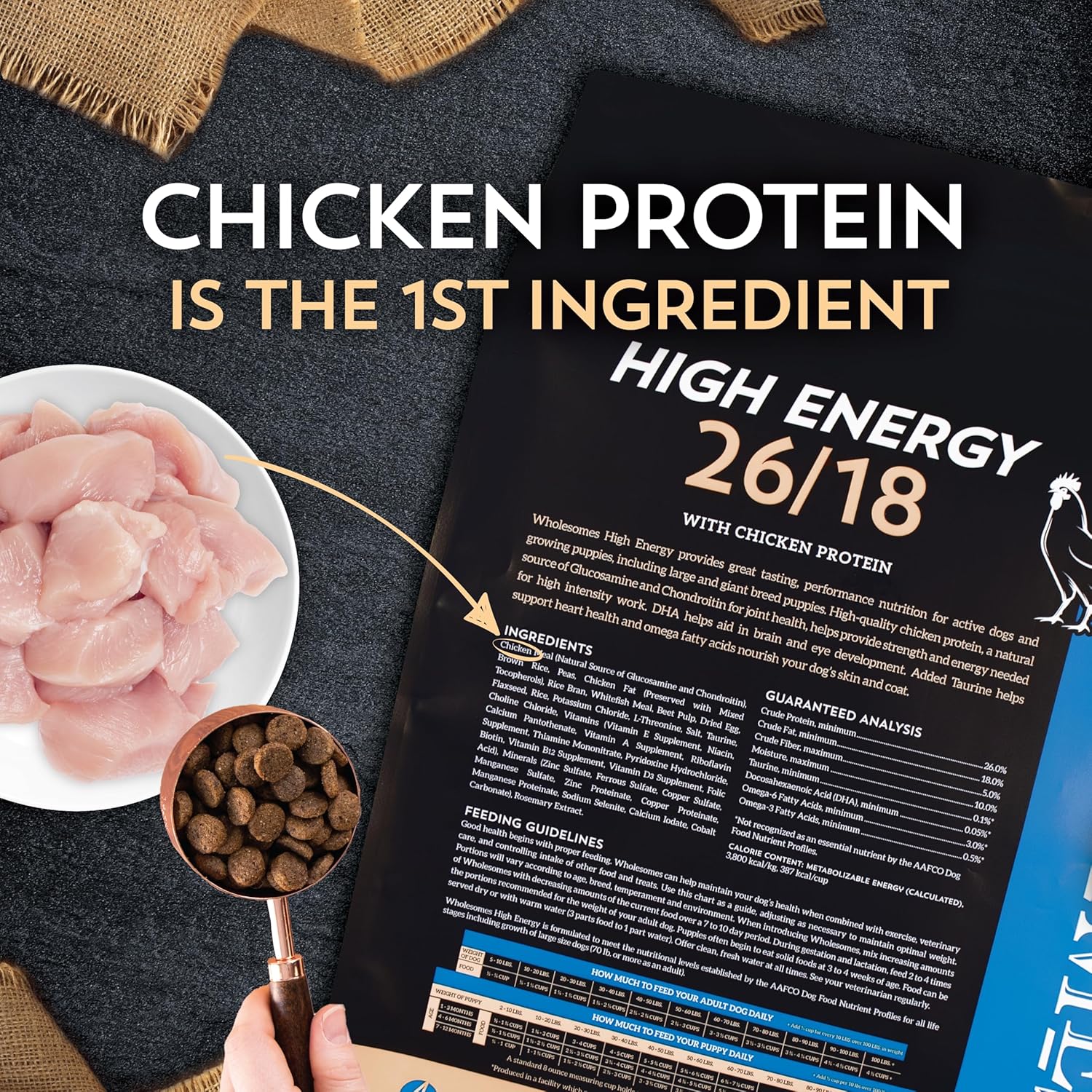 Wholesomes High Energy with Chicken Protein 26/18 Dry Food for Dogs & Puppies 40 lb