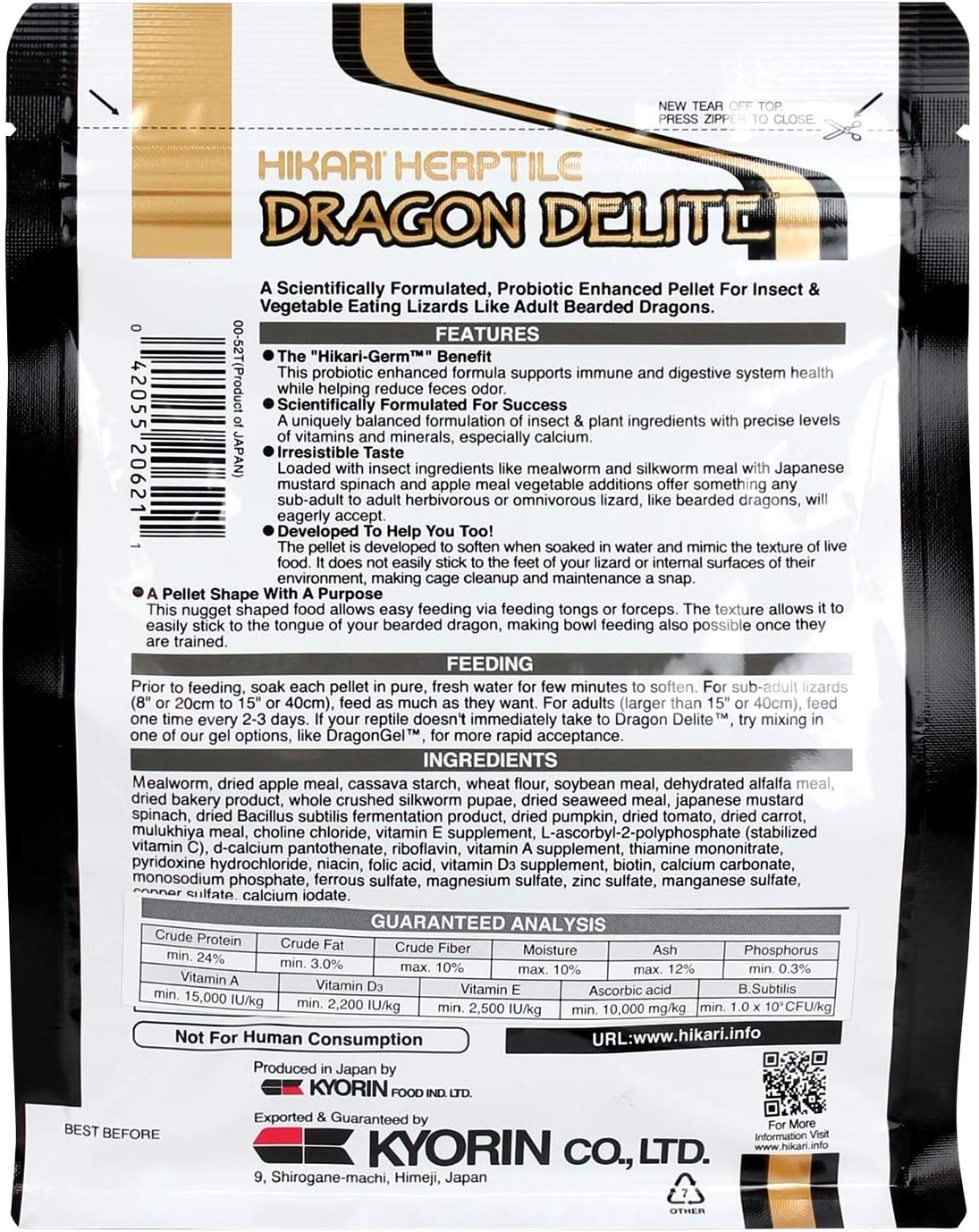 - Nutrition packed rapidly softening pellet with a live food texture that adult insect and vegetable eating lizards like Central Bearded Dragons need