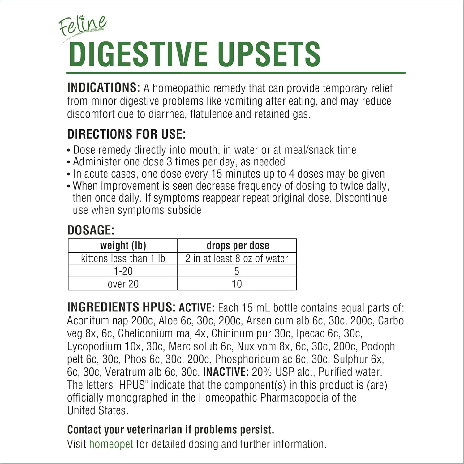 HomeoPet Feline Digestive Upsets, Safe and Natural Cat Digestive Support, 15 Milliliters