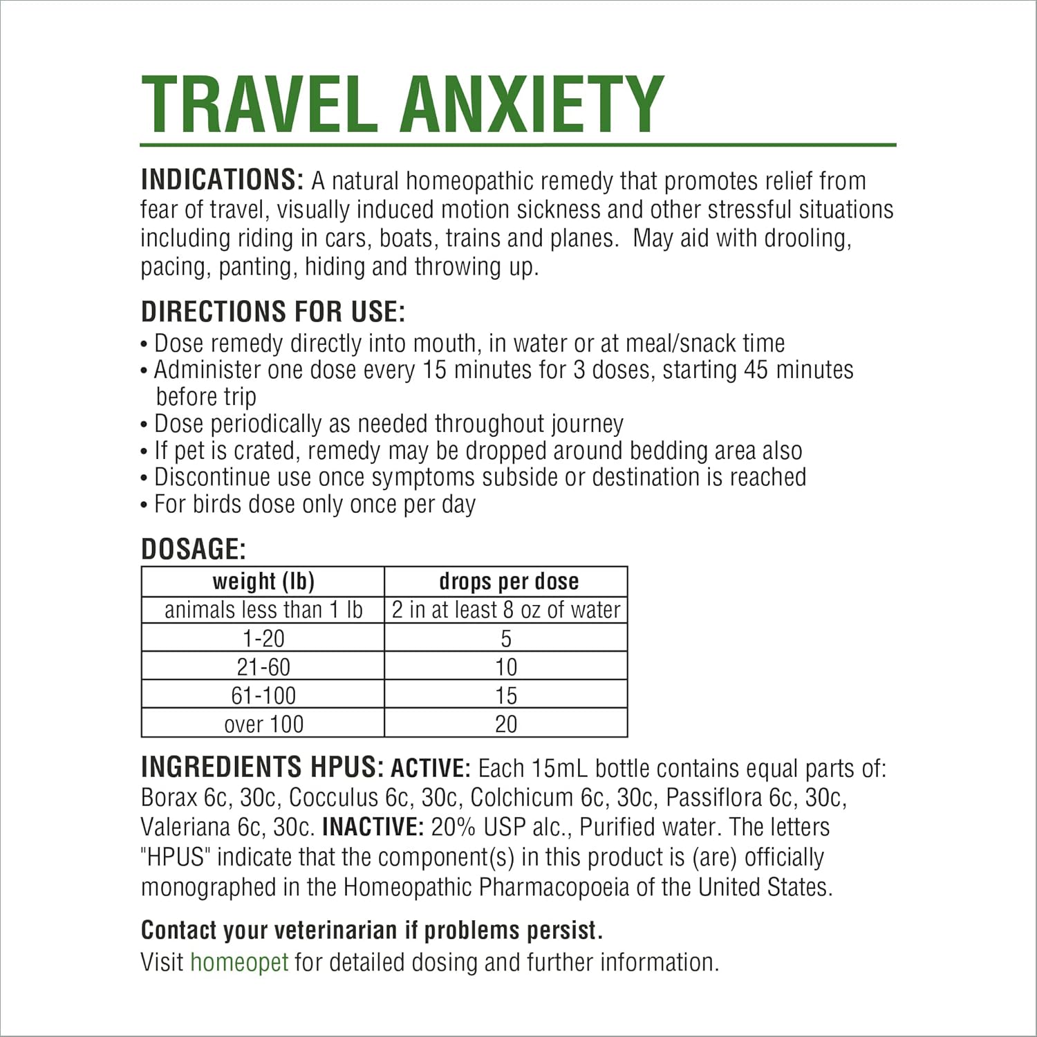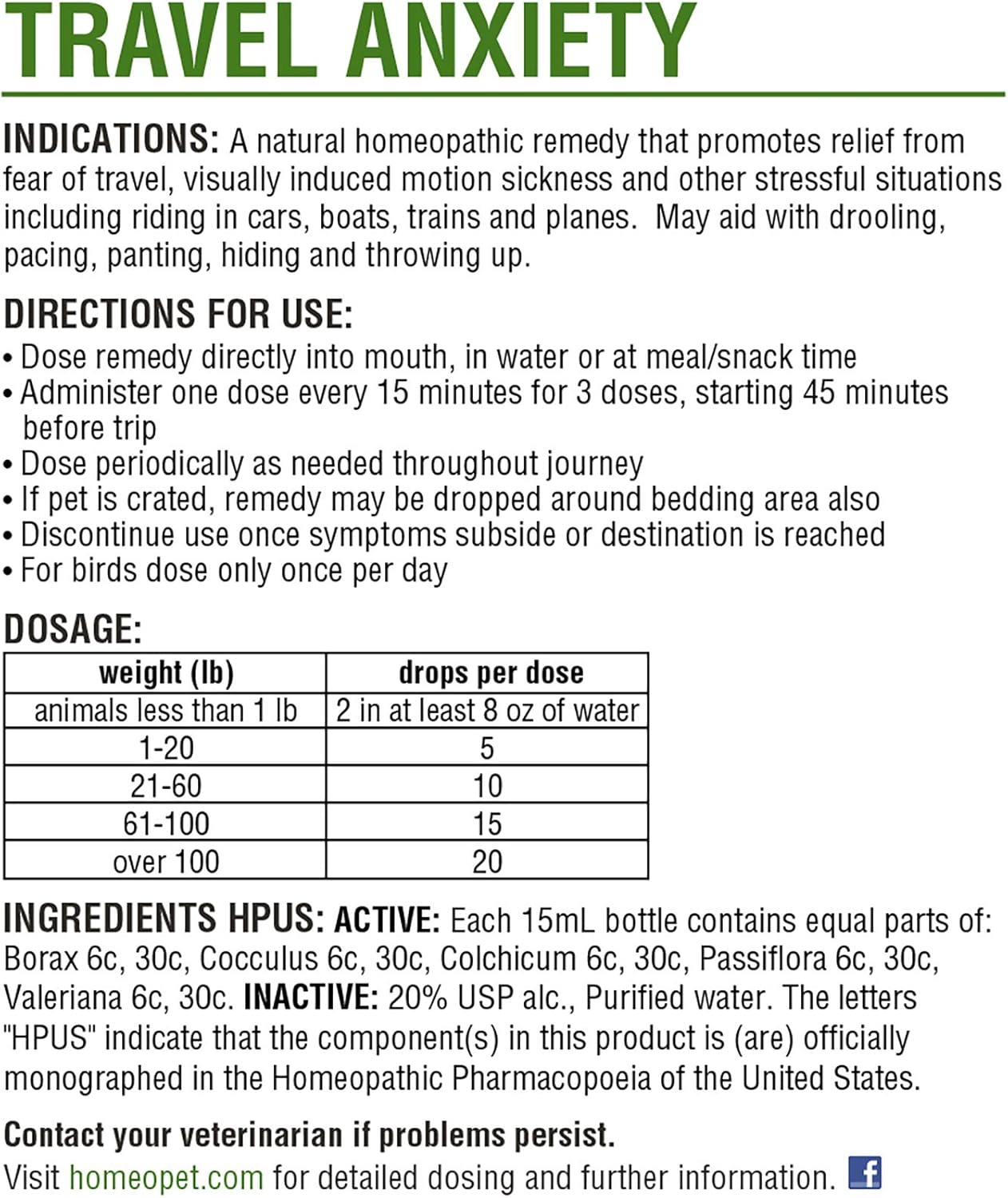 HomeoPet Travel Anxiety Relief, Safe and Natural Pet-Calming Relief Supplement for Cats, Dogs, and Other Small Animals, 15 Milliliters