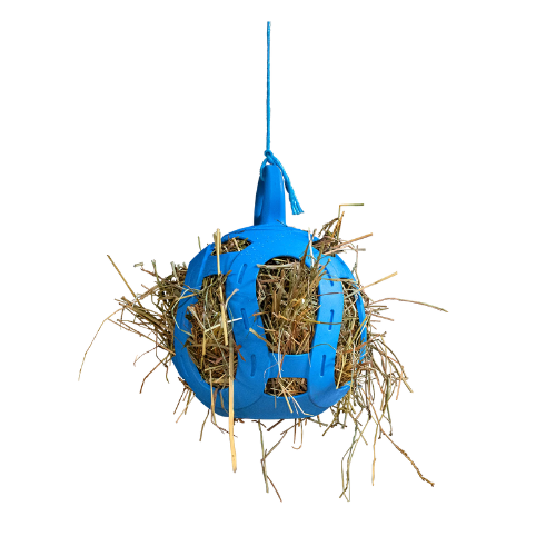 Bring fun and function to feeding time! The Jolly Hay Ball combines the durability of the classic Jolly Ball® with an interactive hay dispenser, creating a mentally stimulating way for horses, ponies, goats, and other livestock to snack and play. Measuring 8” in diameter, this versatile ball can be stuffed with hay, treats, or fruits and hung up for enrichment.