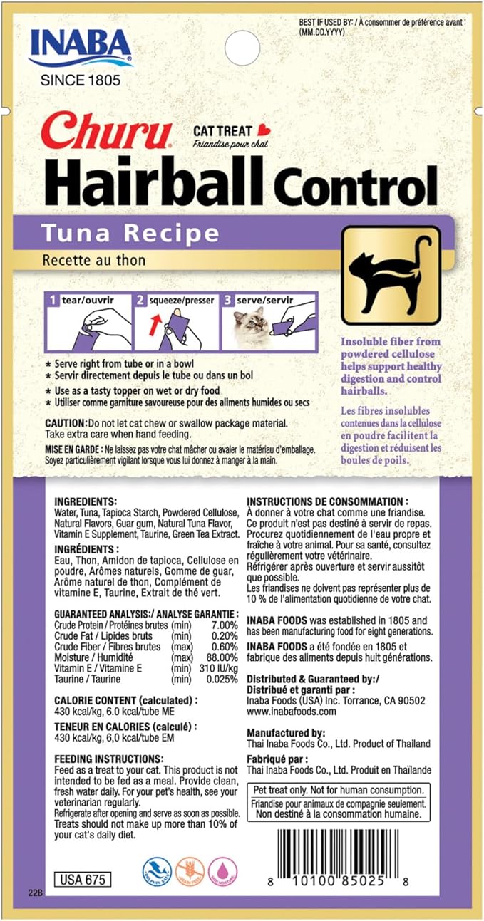 - FUN AND FUNCTIONAL: A first-of-its-kind, creamy purée treat designed to aid with hairball control. Our original Churu formula with an added insoluble vegetable fiber to support healthy digestion and control hairballs