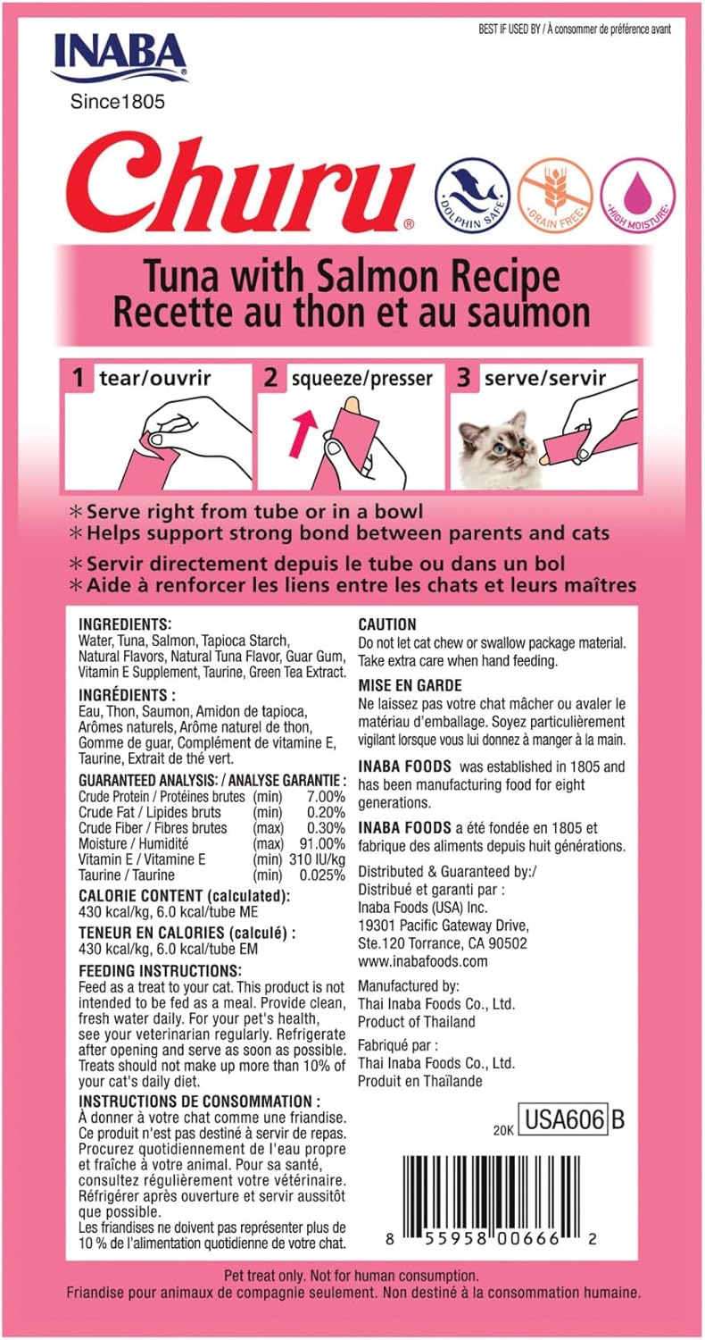 INABA Churu Tuna with Salmon Recipe Lickable Creamy Purée Cat Treats 24 Tubes