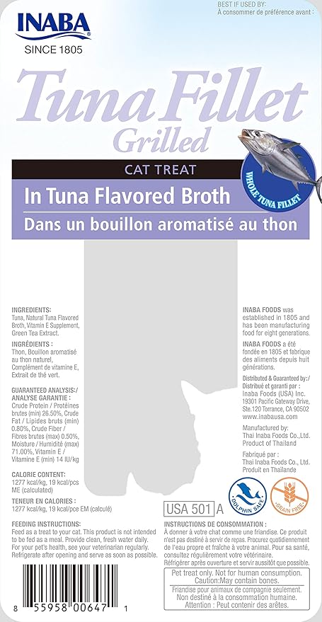 Brand INABA Flavor Tuna in Tuna Broth Age Range (Description) All Life Stages Item Form Fillet Specific...