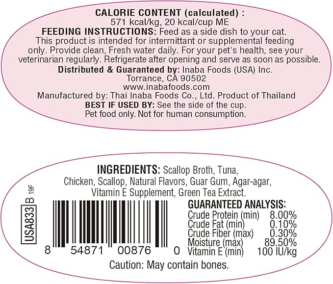 Brand INABA Flavor Tuna & Chicken with Scallop Recipe Age Range (Description) All Life Stages Item Form...